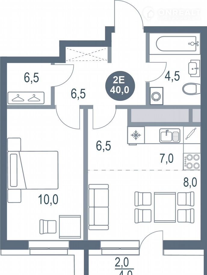 Общая площадь 40 м2