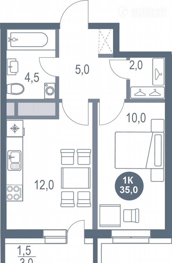Общая площадь 35 м2
