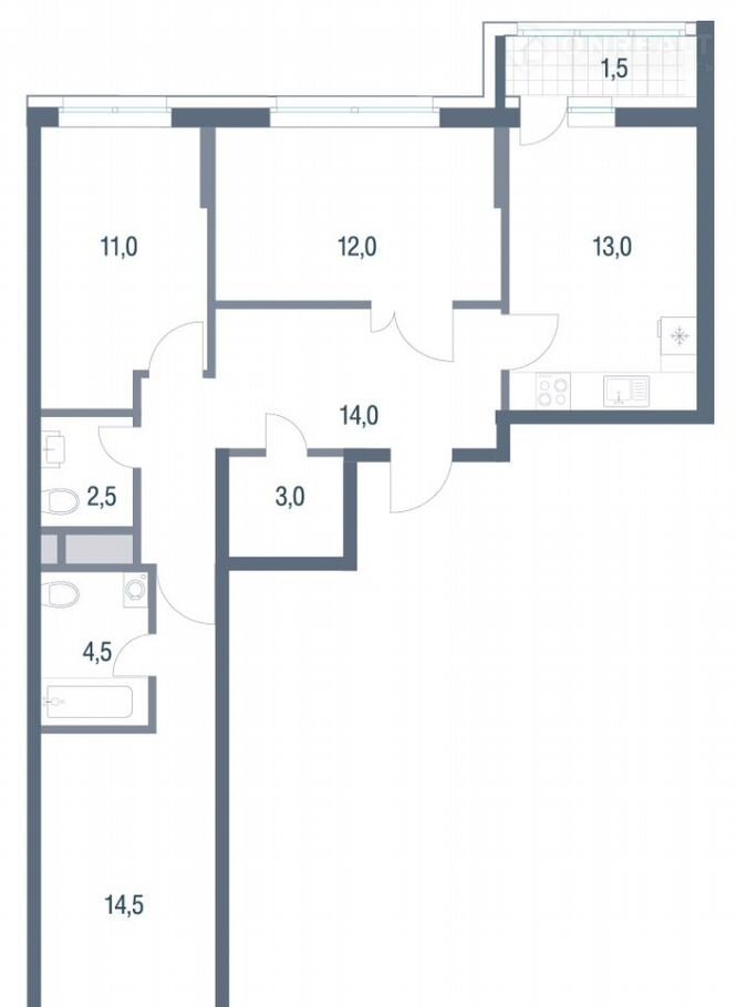 Площадь кухни 13 м2
