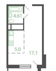 Жилая площадь 17.1 м2