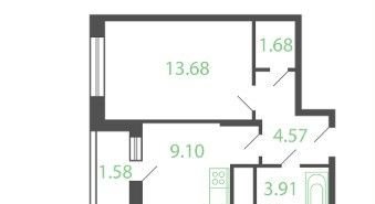Жилая площадь 13.7 м2