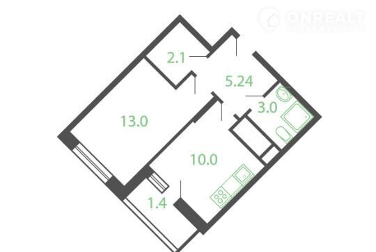 Жилая площадь 12.3 м2