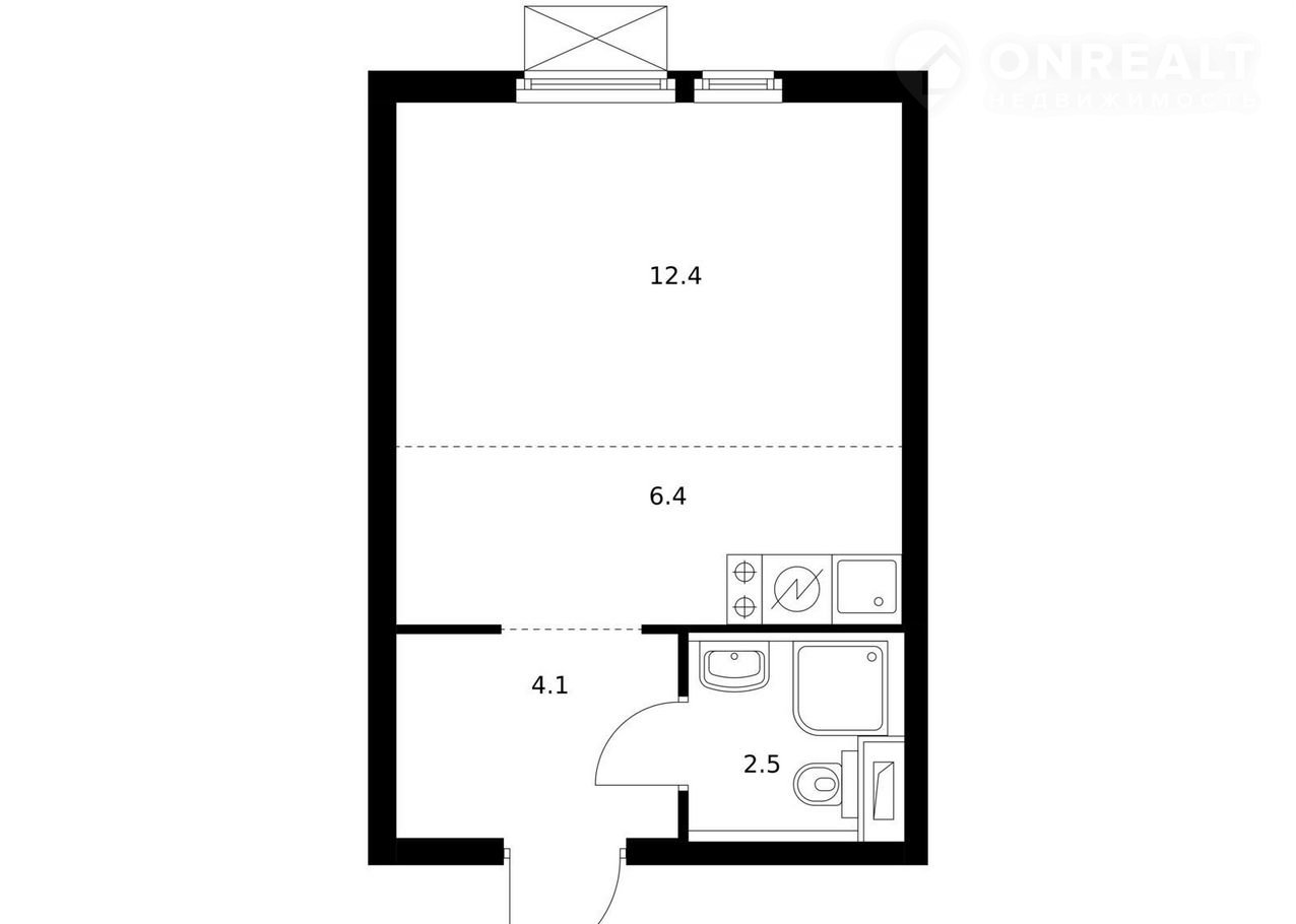 Общая площадь 25.4 м2