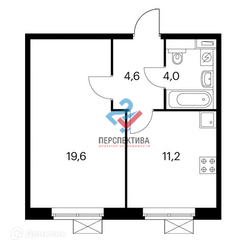 Жилая площадь 19.6 м2