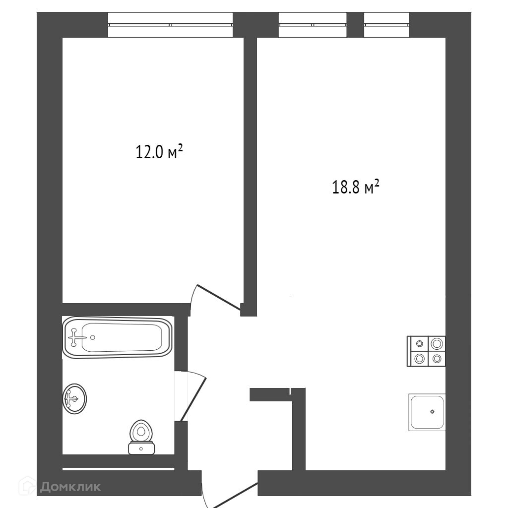 Общая площадь 39 кв.м, кухня 18,8 кв.м., комната 12 кв.м.