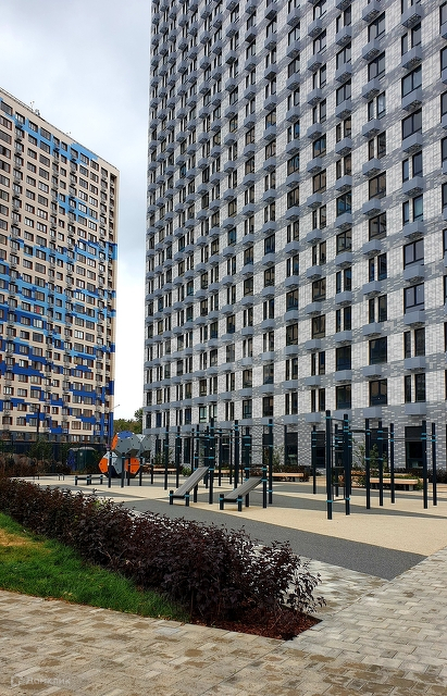 Закрытый двор, множество современных детских и спортивный площадок, беседки, площадка для баскетбола, футбола.