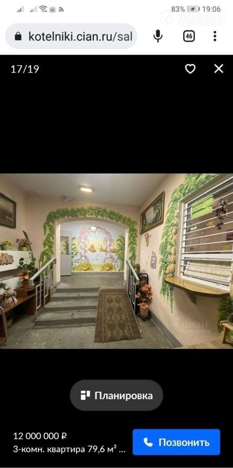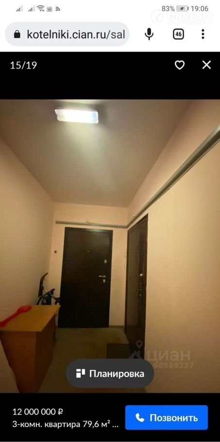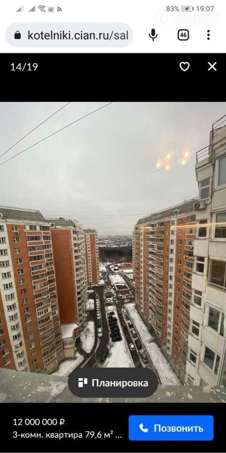 3-комнатная квартира, 76 м2, этаж 16 / 17, на продажу в Котельниках