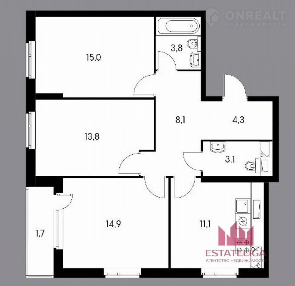 Количество комнат 3