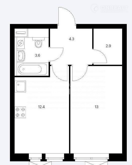 Площадь кухни 12.4 м2