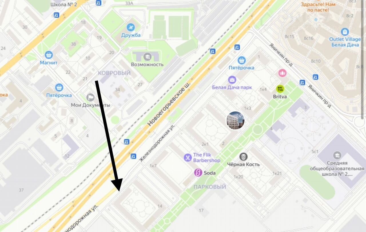 В шаговой доступности Аутлет Белая Дача и Мега Белая Дача.