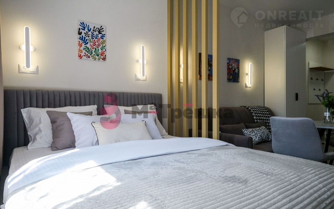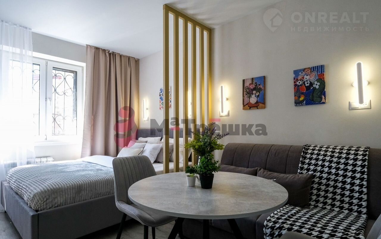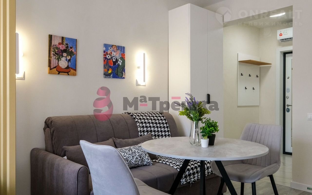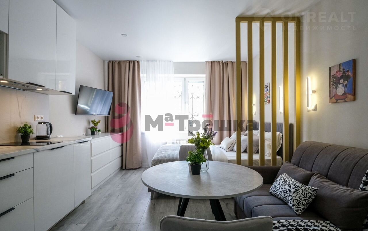 В квартире сделан качественный евроремонт, благодаря которому она выглядит стильно и современно. Пространство студии организовано максимально эффективно: жилое пространство 16 кв. М и компактная кухня 3 кв. м. В наличии вся необходимая техника: кондиционер, холодильник, телевизор и стиральная машина. Мебель есть как на кухне, так и в комнате, поэтому вы сможете сразу заселиться. В санузле установлена душевая кабина.