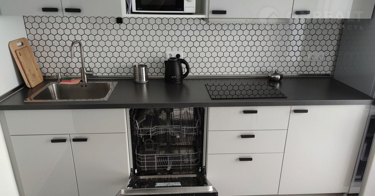 В кухонной зоне установлены холодильник, посудомоечная машина .