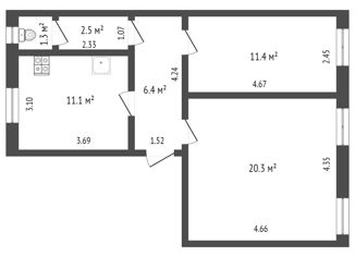 Общая площадь: 55.3 м2