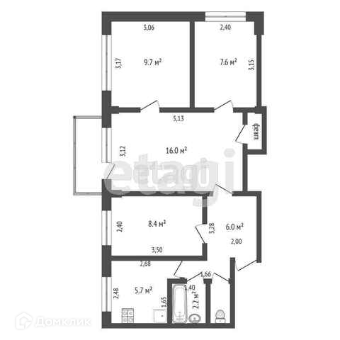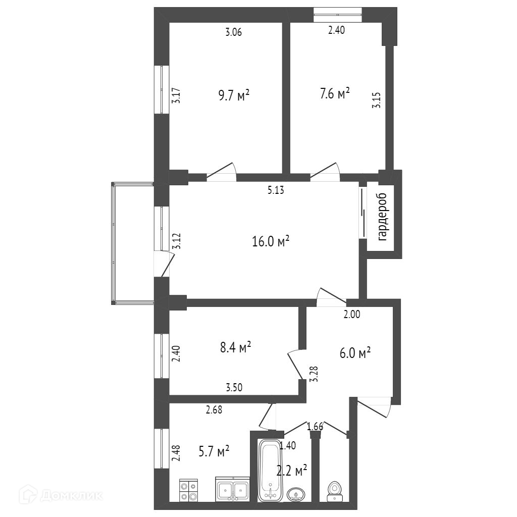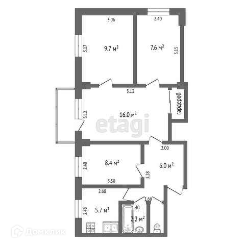 Общая площадь 58 м2