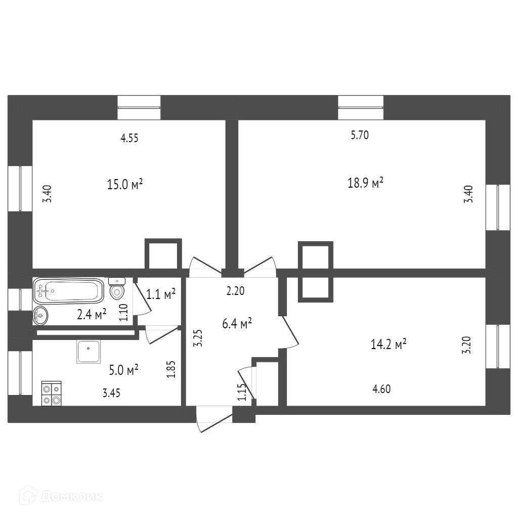 Общая площадь 63.7 м2