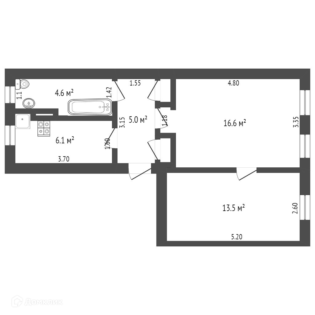 Общая площадь 46.5 м2