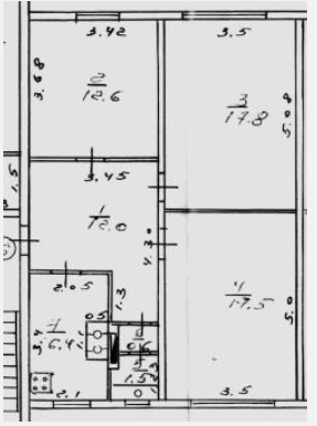 Площадь комнат (кв. м.): 12.60,17.80,17.50