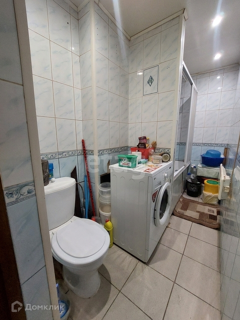 Свой персональный санузел с унитазом и ванной. В нем также установлена стиральная машина.