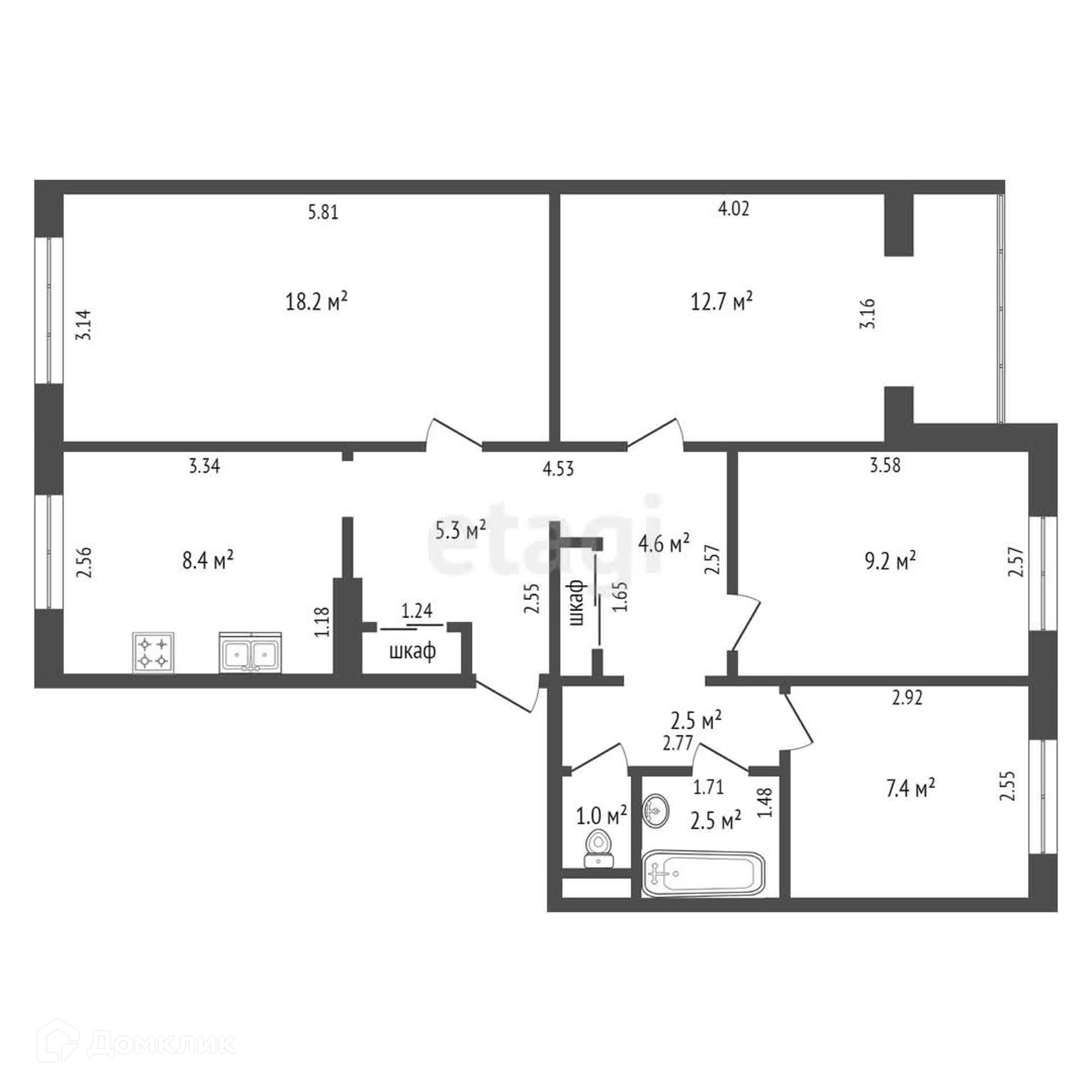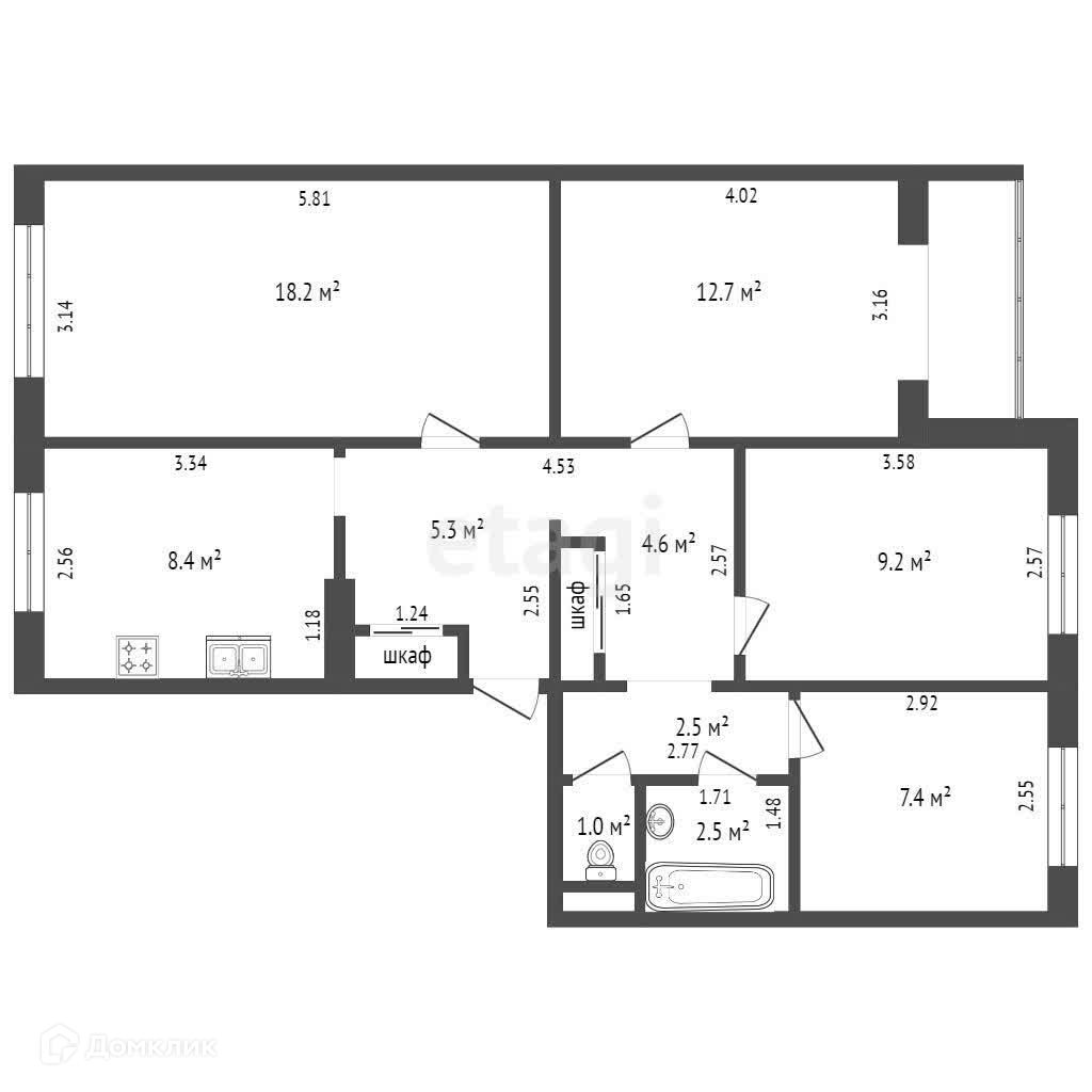 Общая площадь 73.3 м2