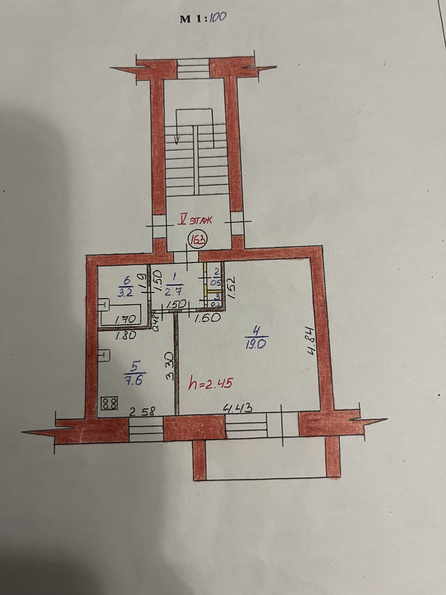 Высота потолков 2.45 м