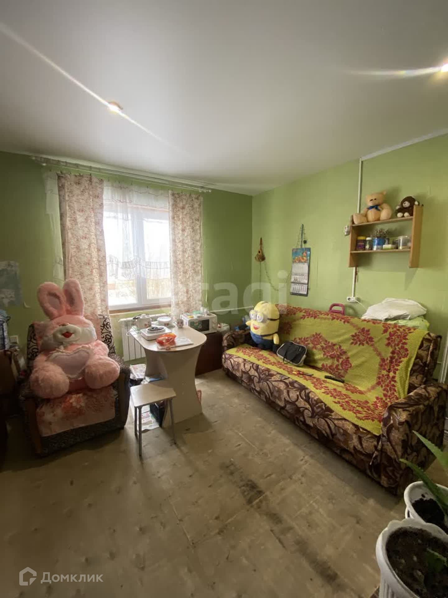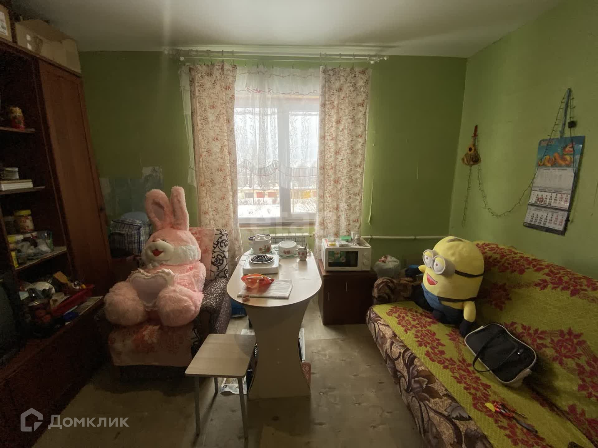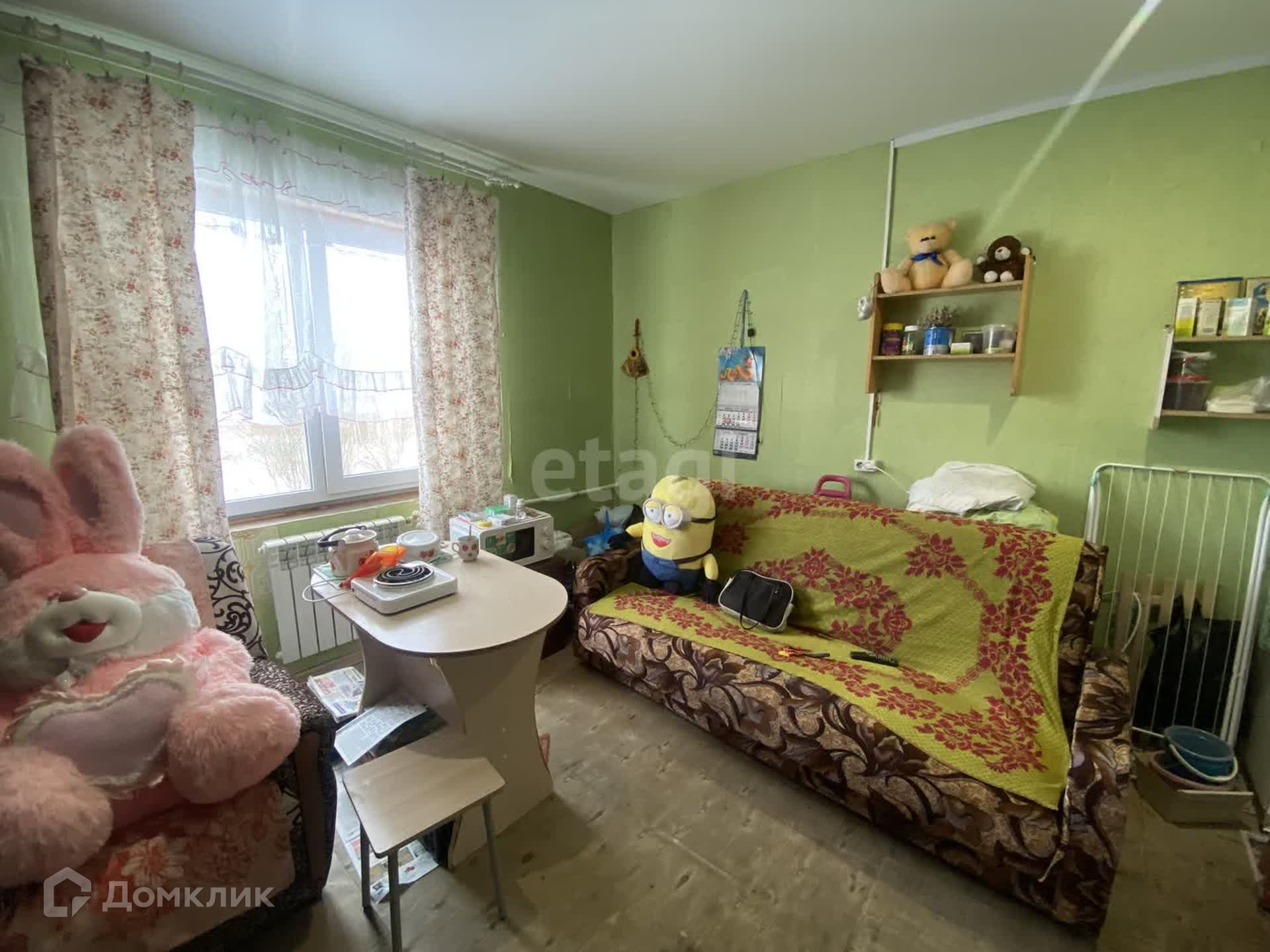 Квартира очень чистая, опрятная. Потолок натяжной, пол требует покрытия. Обои тоже заменить. Санузел совмещен, в панелях. Квартира очень теплая.Установлено пластиковое окно.