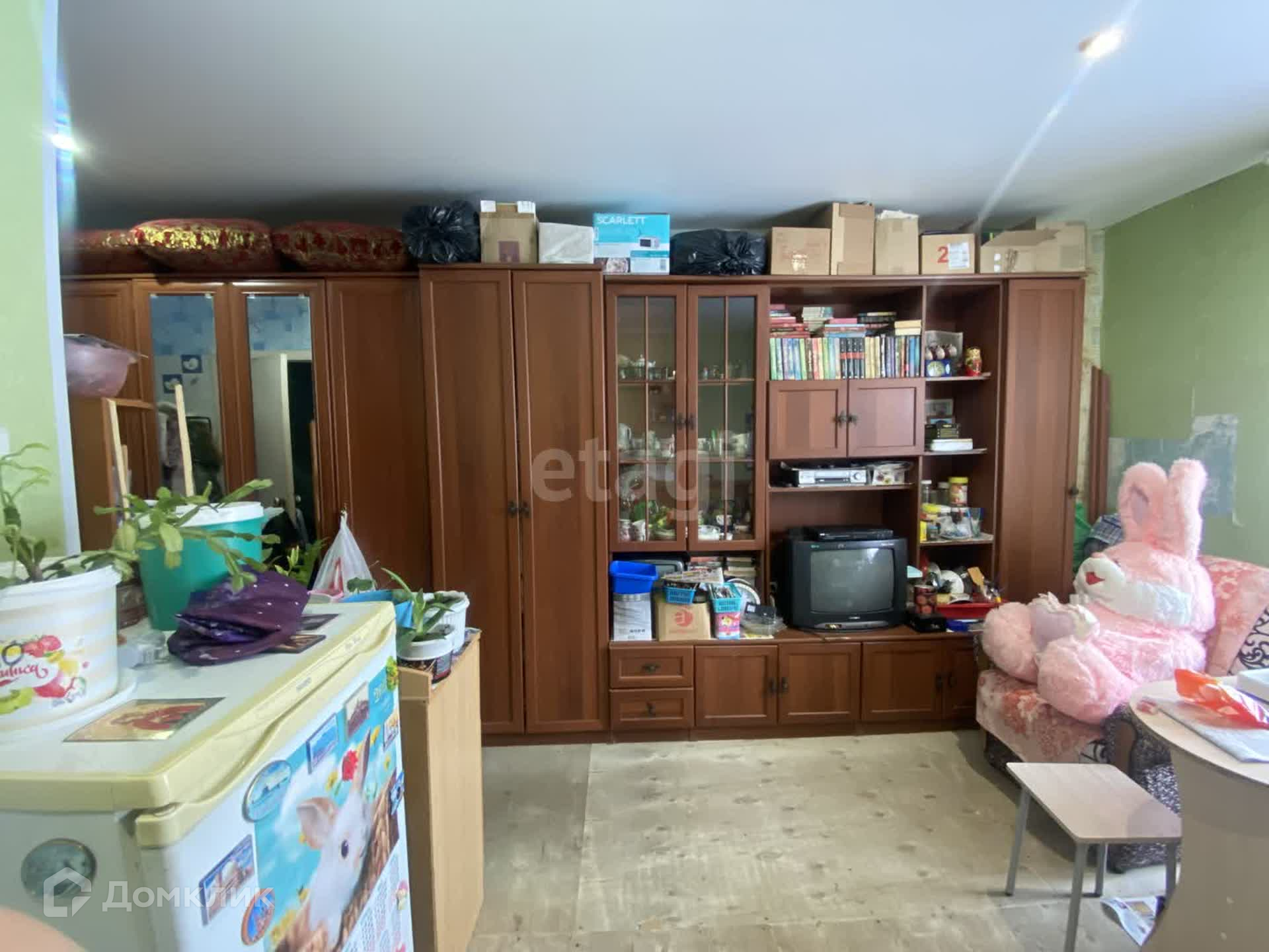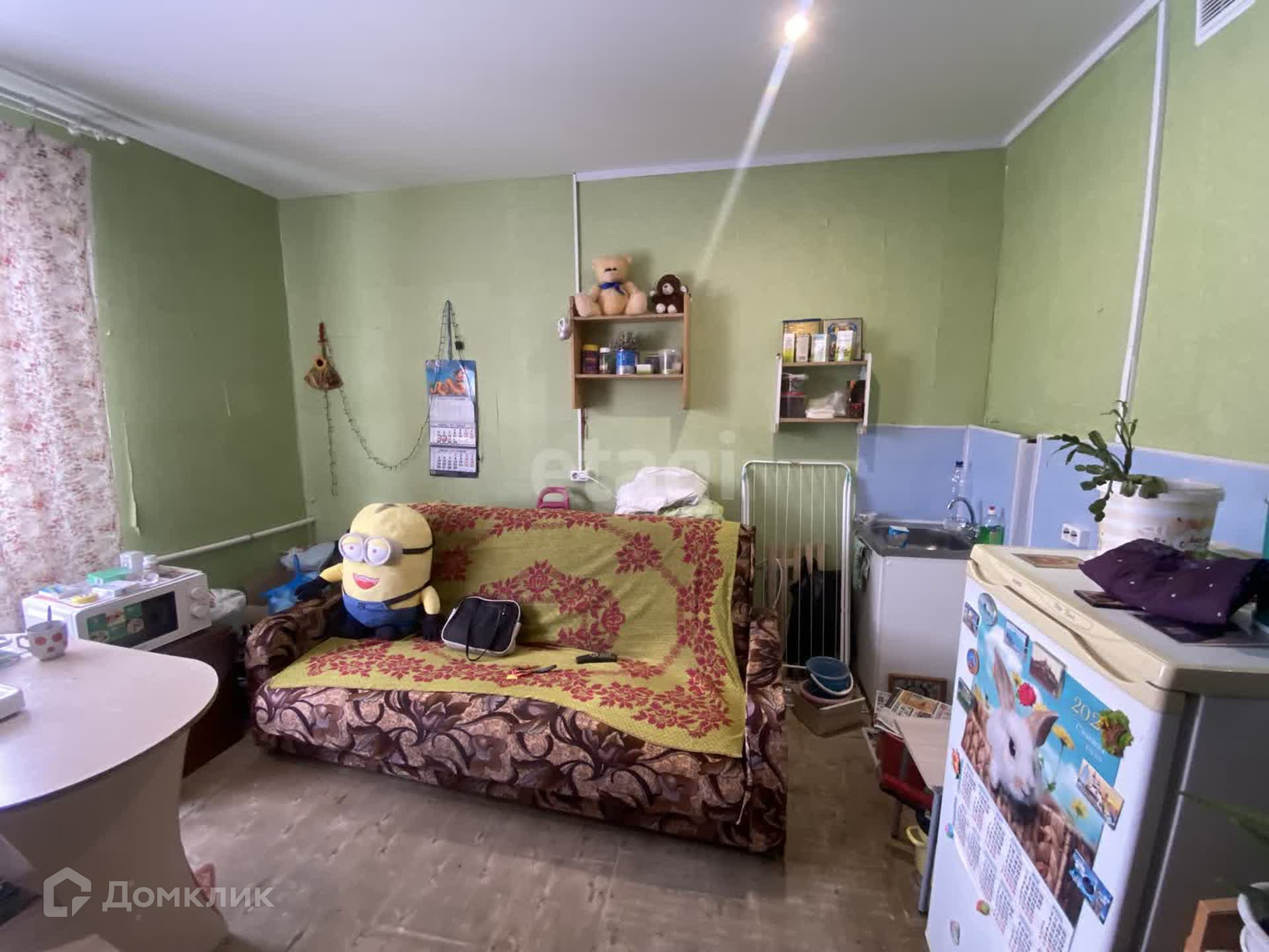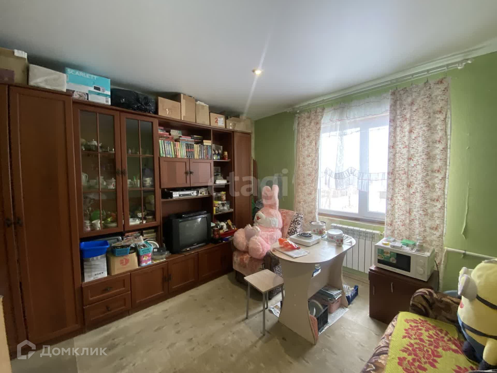 Квартира очень чистая, опрятная. Потолок натяжной, пол требует покрытия. Обои тоже заменить. Санузел совмещен, в панелях. Квартира очень теплая.Установлено пластиковое окно.