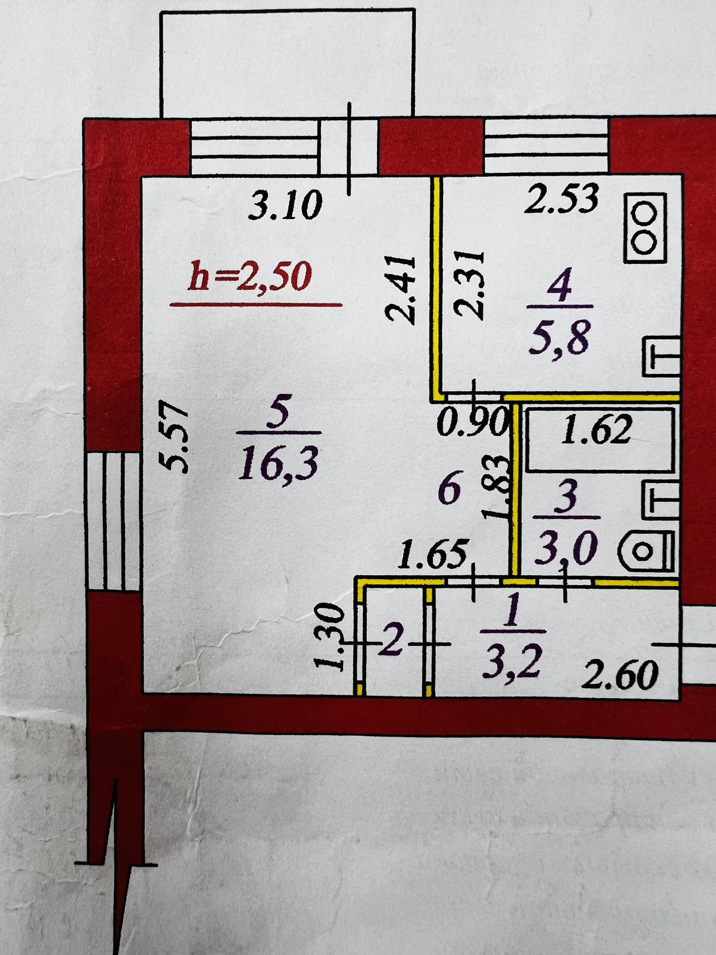 Площадь кухни 6 м2