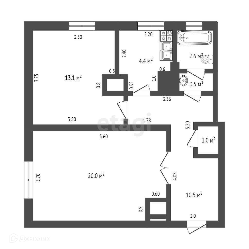 Общая площадь 51.7 м2