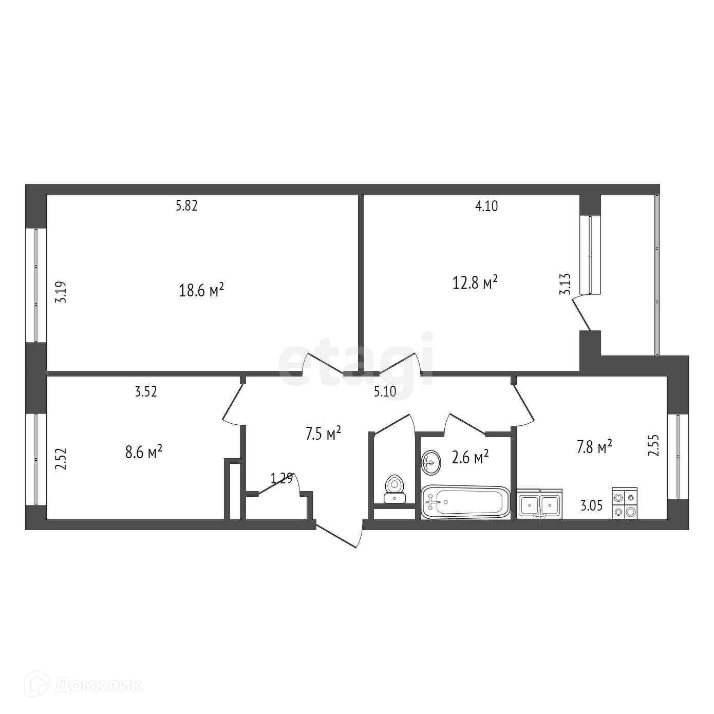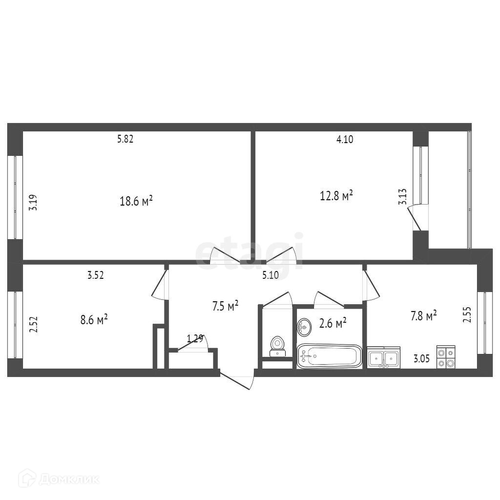 Общая площадь 59.6 м2