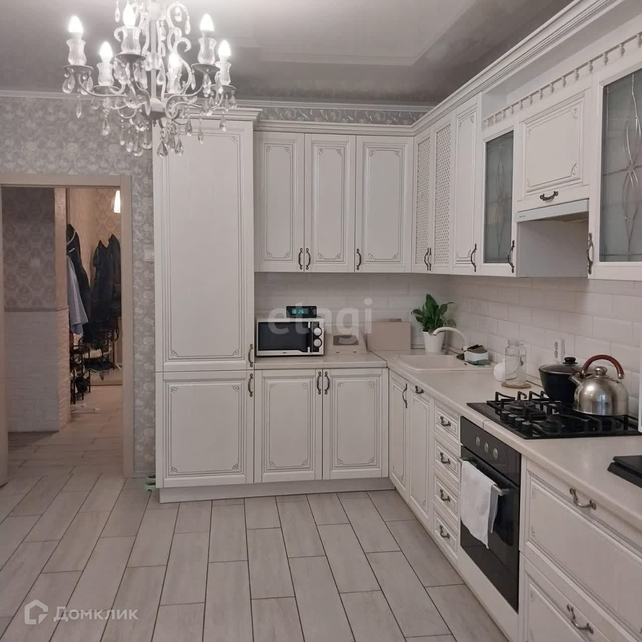Просторная кухня с выходом на застекленную лоджию станет отличным местом для семейных ужинов и встреч с друзьями. Кухня оборудована встроенной мебелью и техникой, а также установлен газовый котел для вашего удобства.