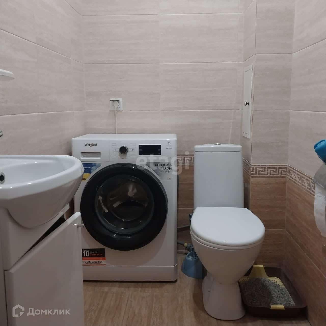 Раздельный санузел, оформленный в современном кафеле, добавляет дополнительный комфорт.