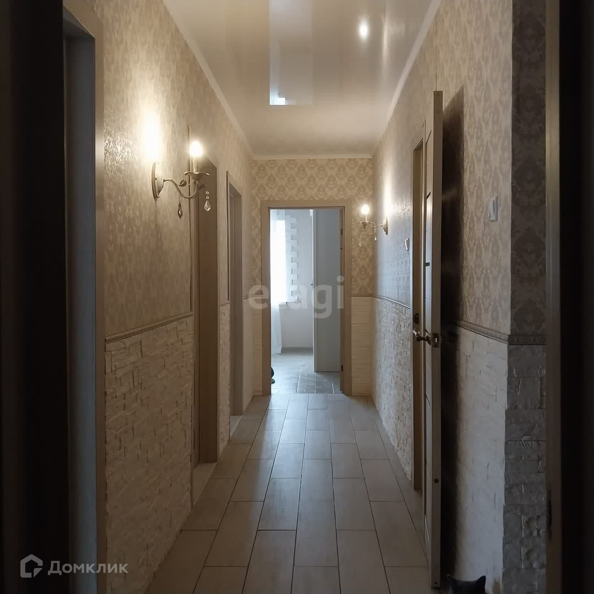 Во всей квартире установлены натяжные потолки, что придает помещению стильный и современный вид.