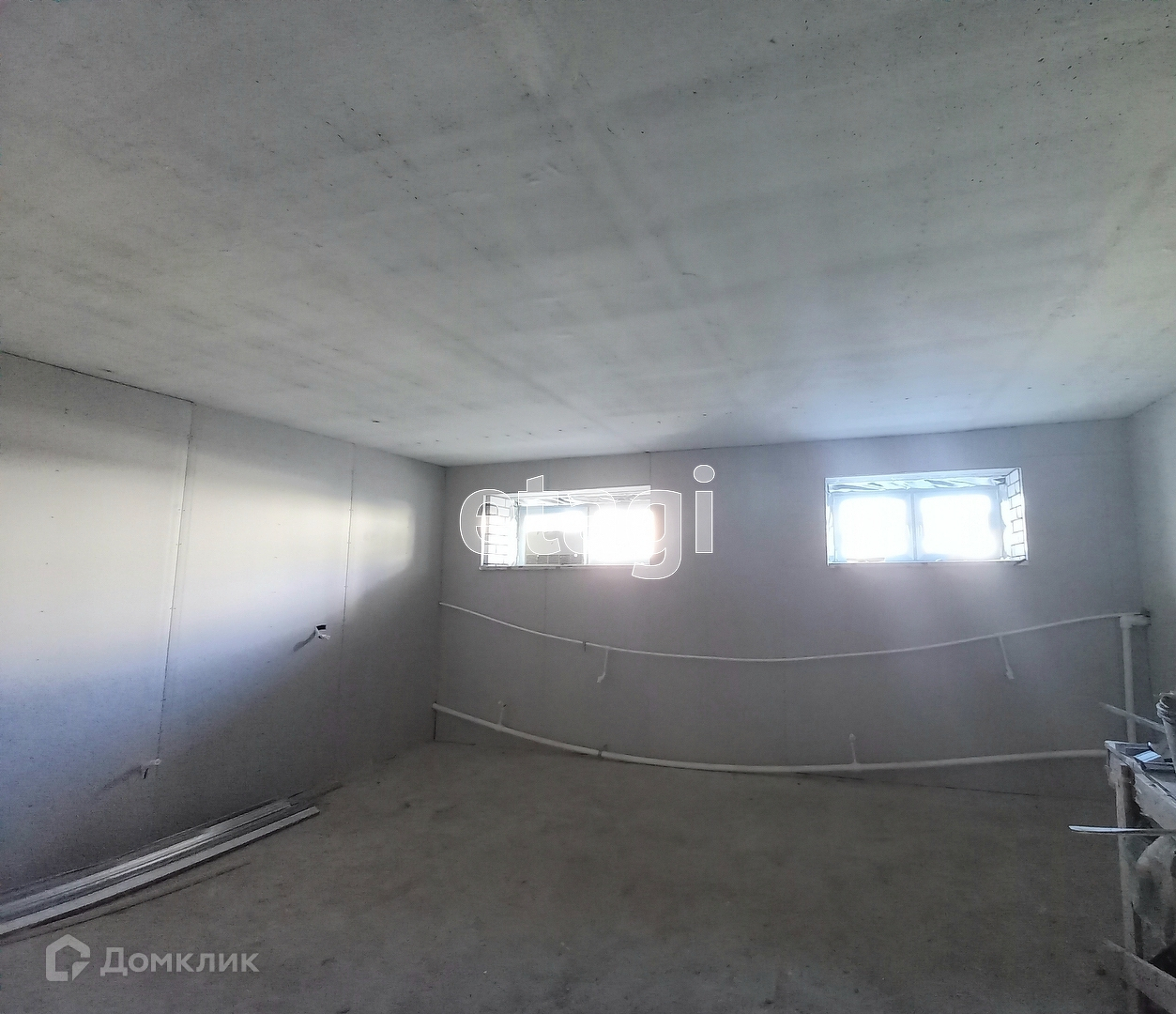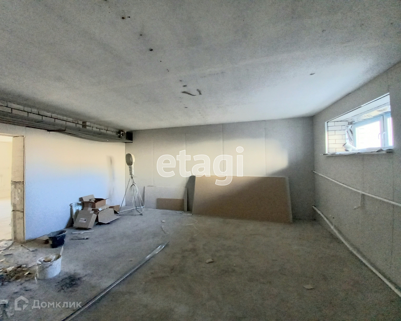 В помещении 2 окна, есть небольшое подсобное помещение,высота потолков 2,8 м, сделана стяжка пола, стены подготовлены к финишной отделке (обшиты гипсокартоном).
