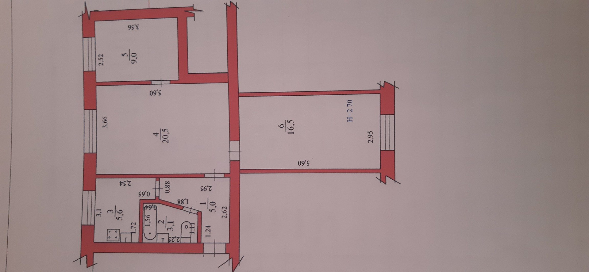 Жилая площадь 59.7 м2
