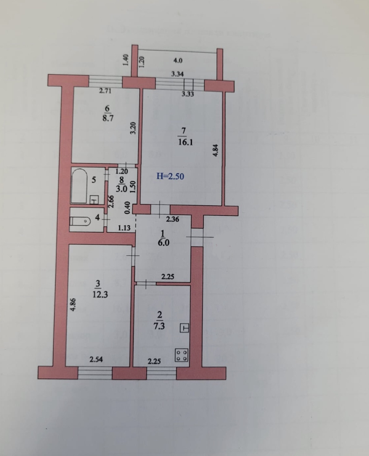 Площадь кухни 7.3 м2