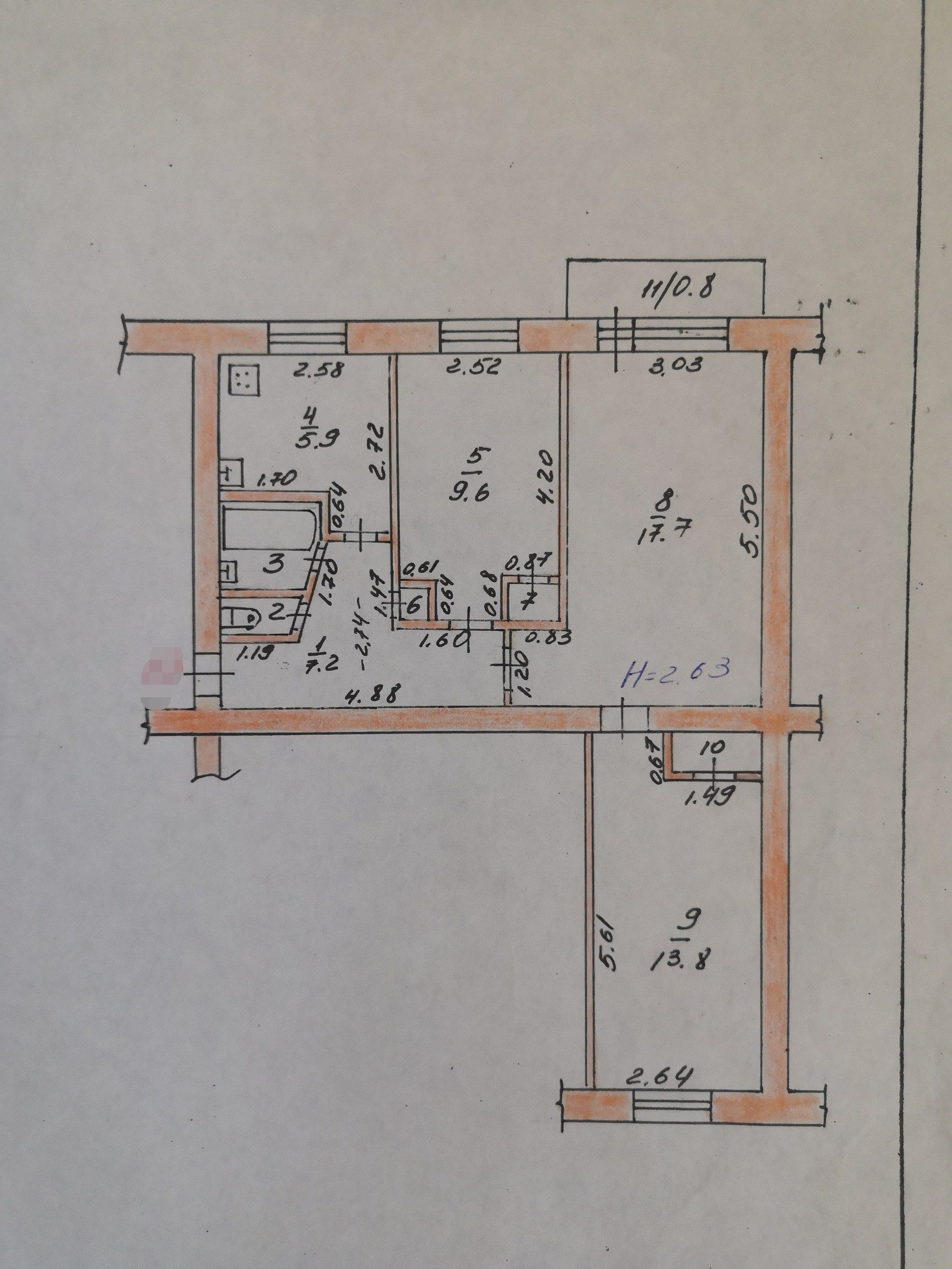 Высота потолков 2.6 м
