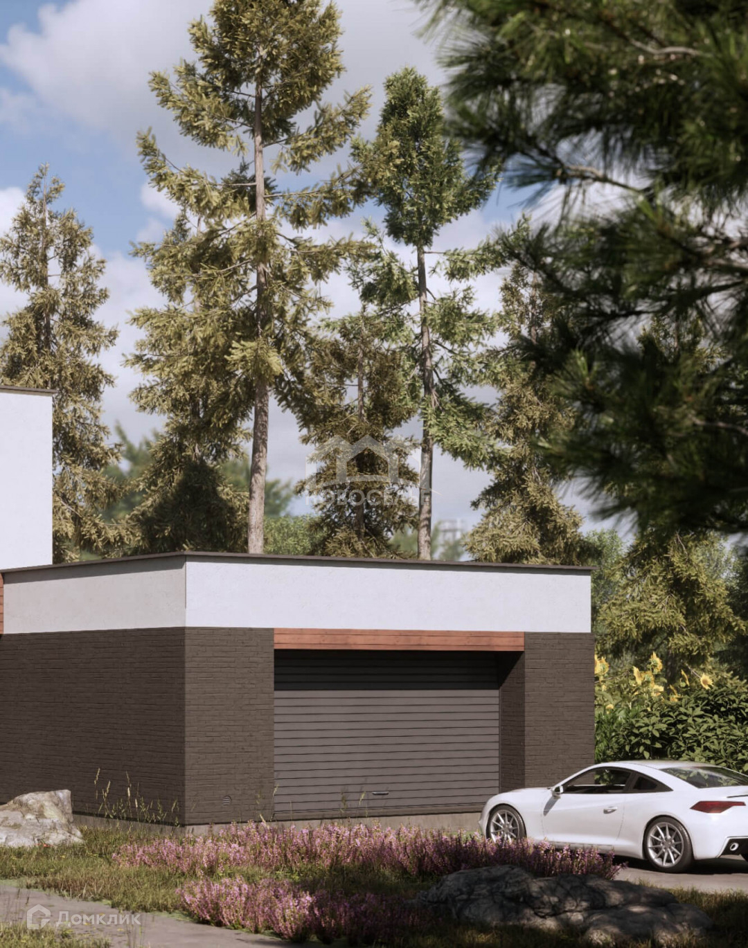 Лестничная клетка запроектирована монолитная, с организованным пространством под кладовую. При доме также запроектирован гараж на два машина-места и отведено место под хранение квадроцикла.
