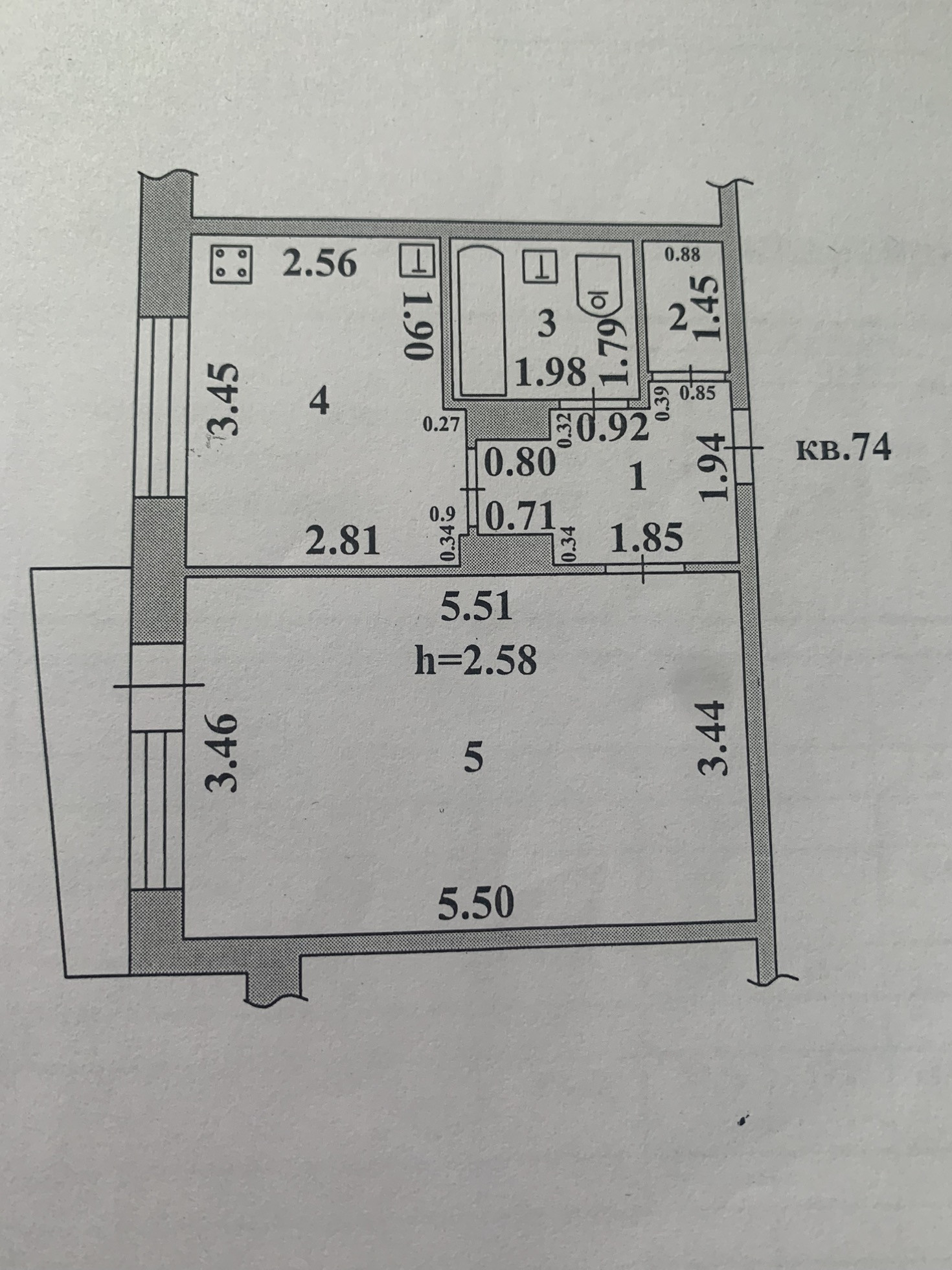 Высота потолков 2.58 м