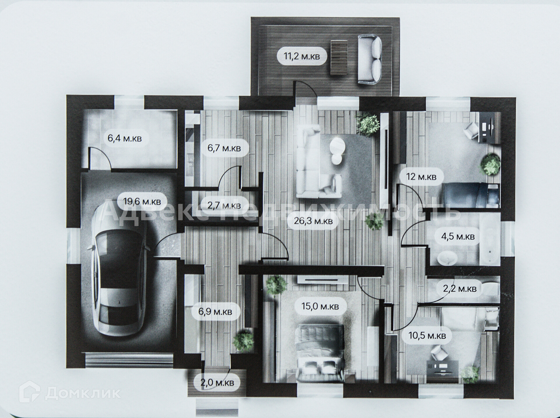 ID: 806844   Домовладение уровня бизнес класса! Коттедж 130 кв м в 25 км от города в новом коттеджном поселке. Одноэтажный дом с продуманной планировкой, включает в себя кухню-гостиную с выходом на террасу и три спальные комнаты, санузел, холл, котельную. Отличительной особенностью проекта, привлекающей внимание, является наличие больших окон в пол. Санузел совмещенный. Высота потолков 2,8 м. Фасад может быть выполнен в штукатурном исполнении или в керамическом кирпиче. Участок с благоустройством. С 3-х сторон участок огражден забором из профнастила в металлической рамке. Фасад участка дополняет забор из горизонтальных ламелей. Тропинки перед домом выполнены из брусчатки Старый город, это изысканное сочетание классики и современного стиля. Вдоль дорожек устанавливаются ландшафтные светильники. Перед домом укладывается рулонный газон. Предусмотрено парковочная площадка на 4 машины. Благоустройство радует сразу, а не спустя долгие годы.