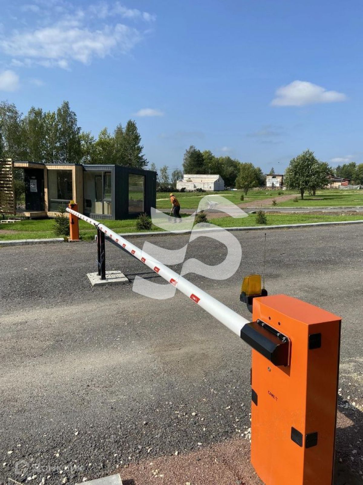Участок находится на ровном и сухом месте. В коттеджном поселке предоставлены коммуникации: свет (15 кВ), газ проходит по границе участка, в пешей доступности продуктовый магазин, высокоскоростной интернет, КПП