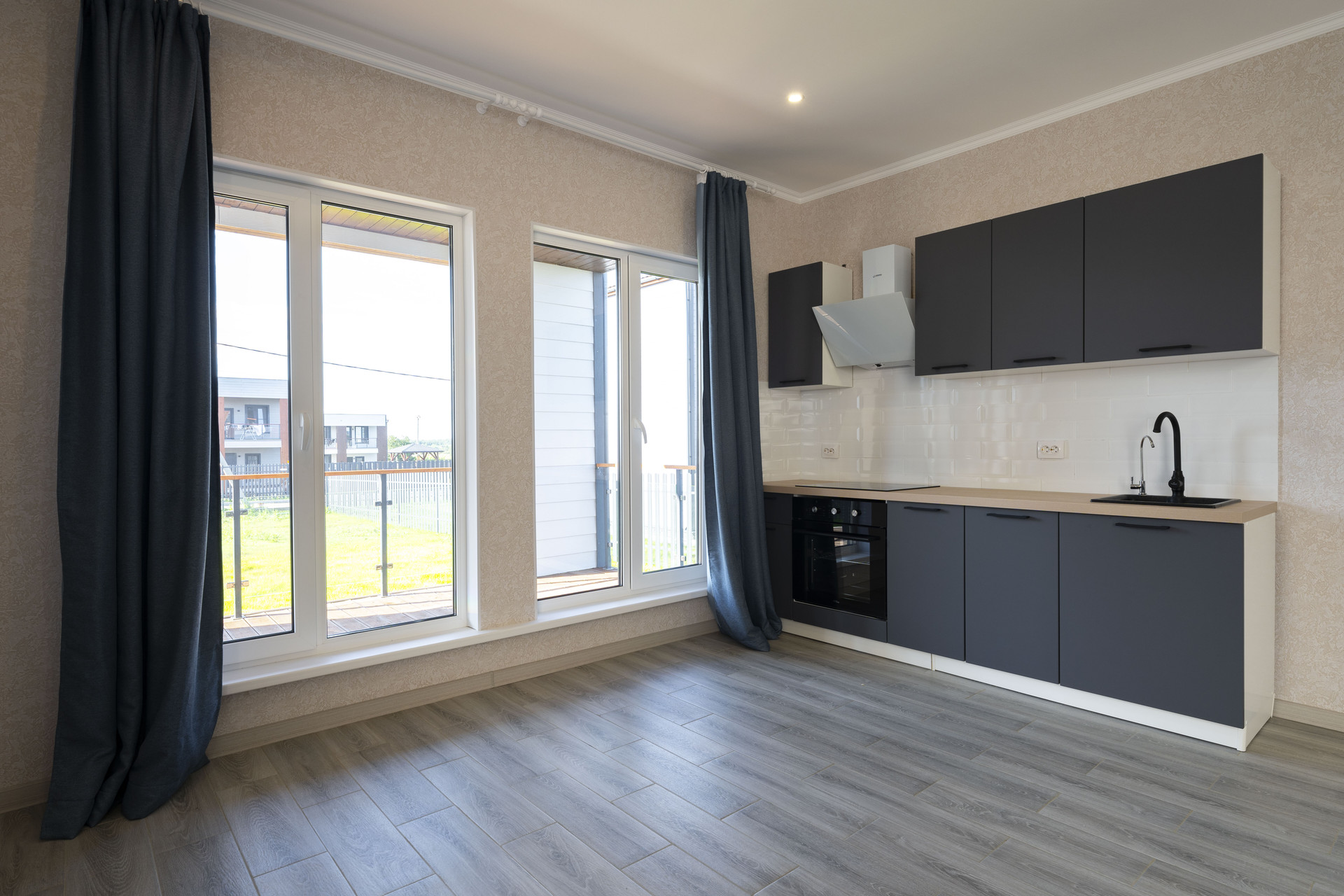 • полностью оборудованная кухня со встроенной варочной панелью и встроенным духовым шкафом