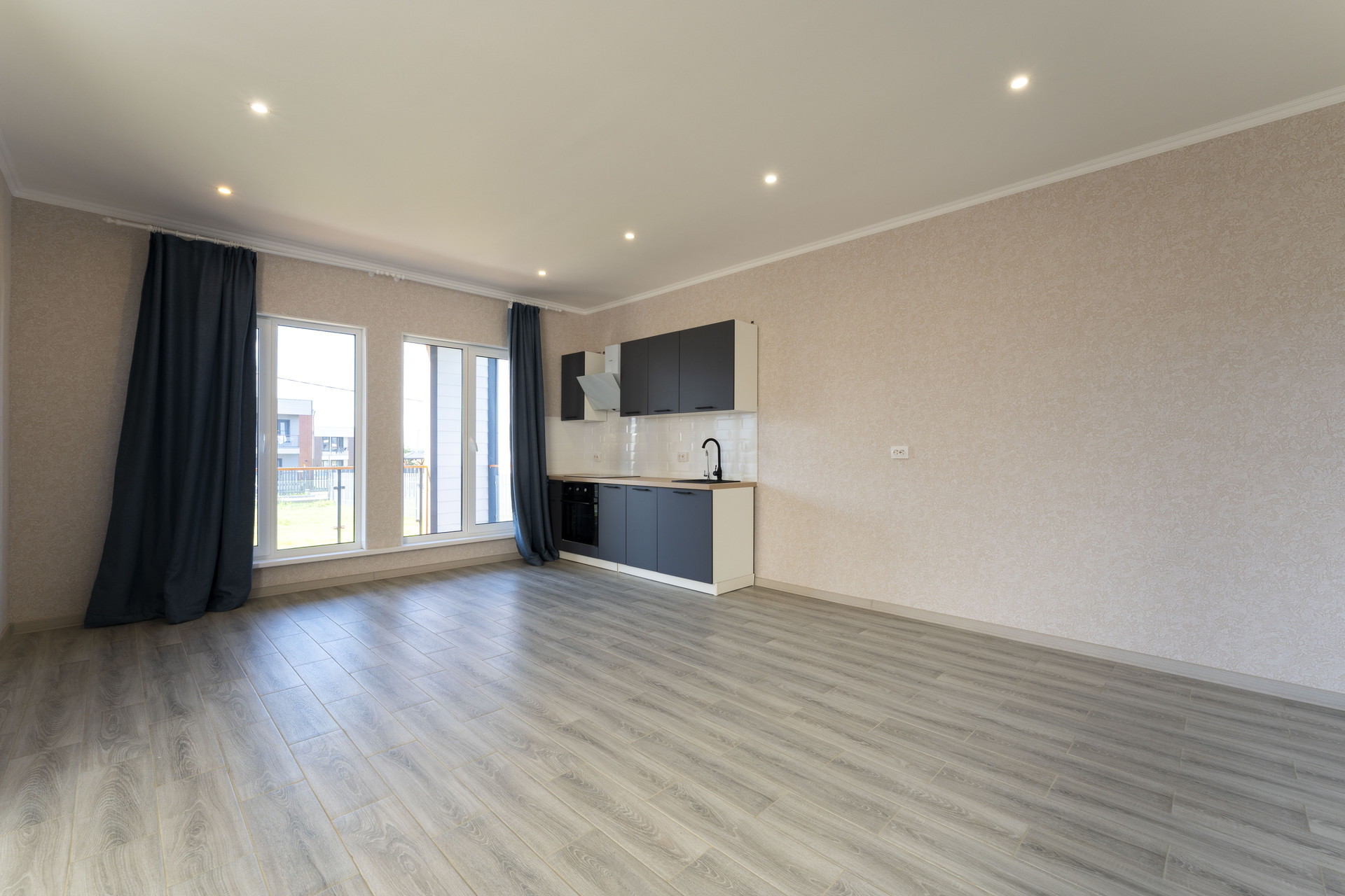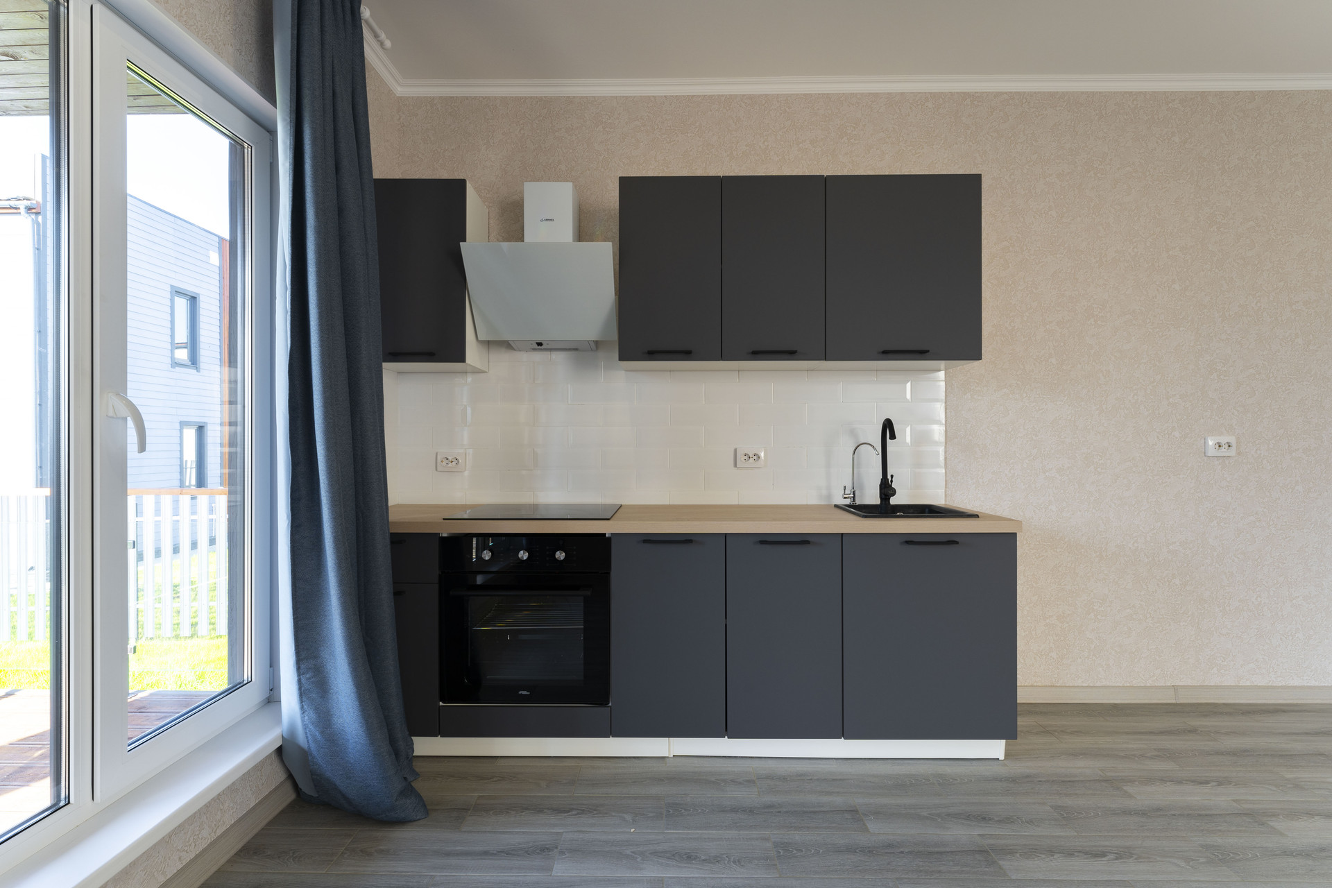 • полностью оборудованная кухня со встроенной варочной панелью и встроенным духовым шкафом