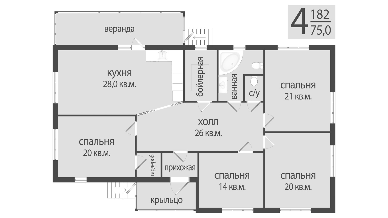 Общая площадь 182 м2