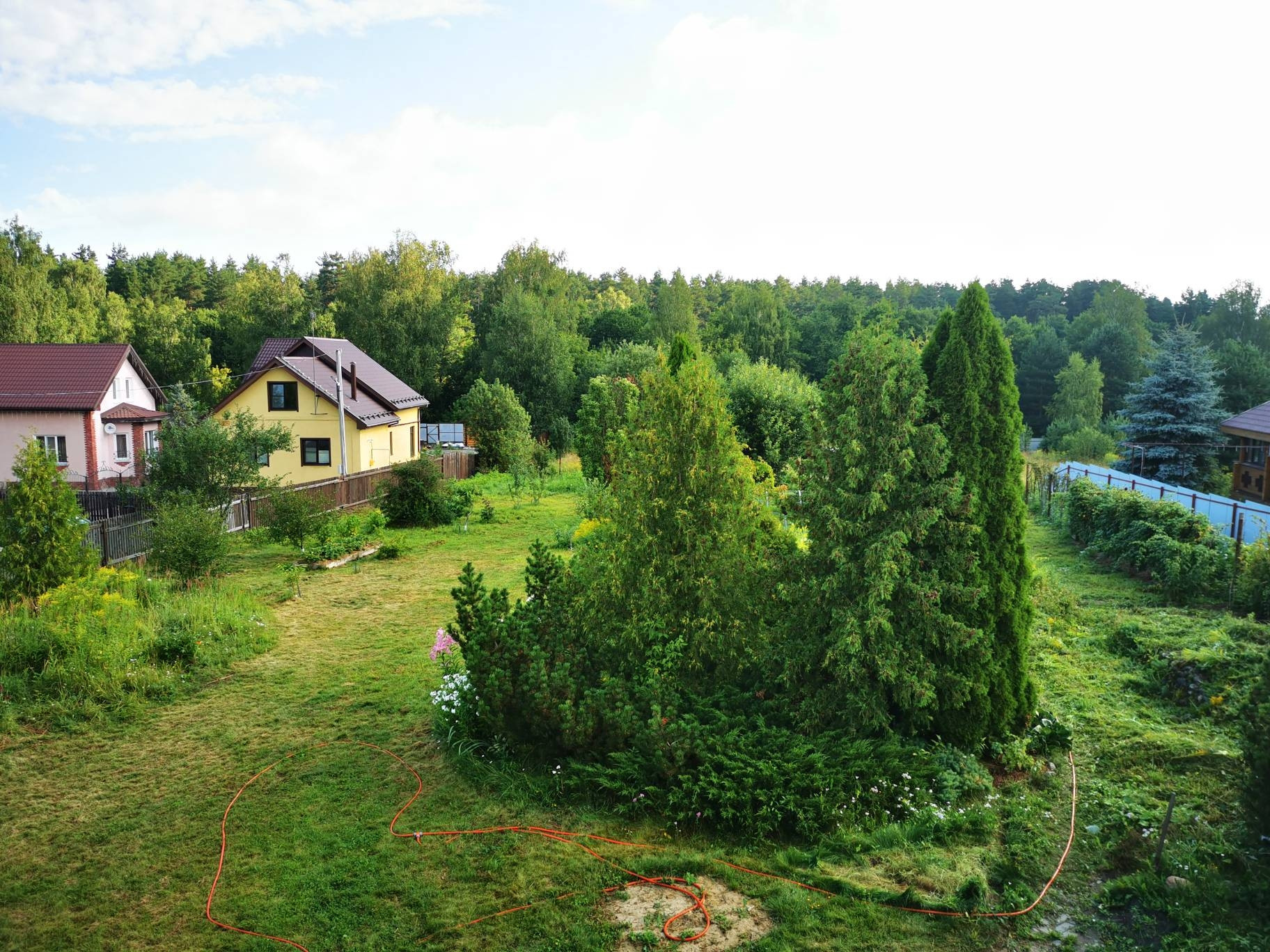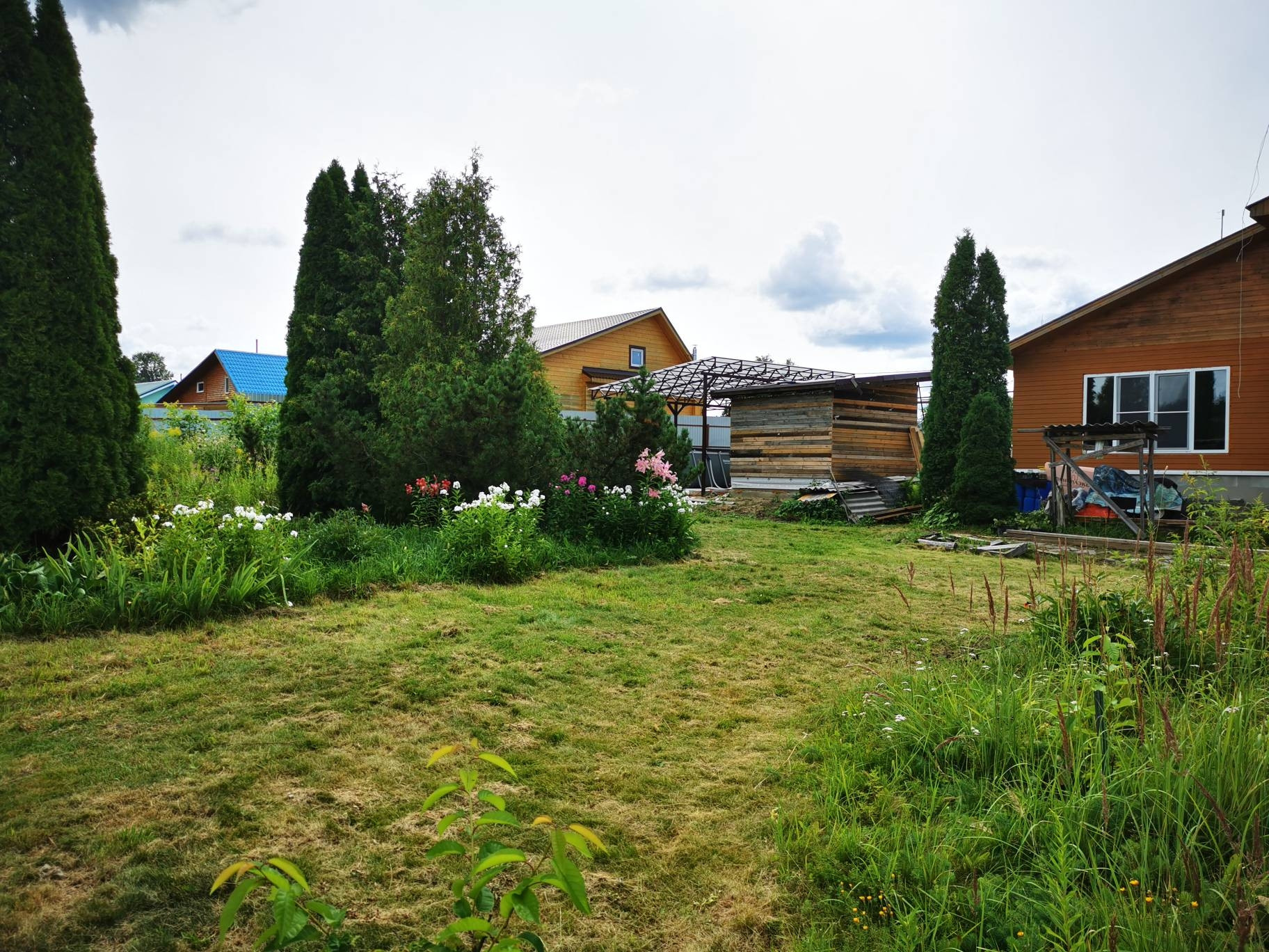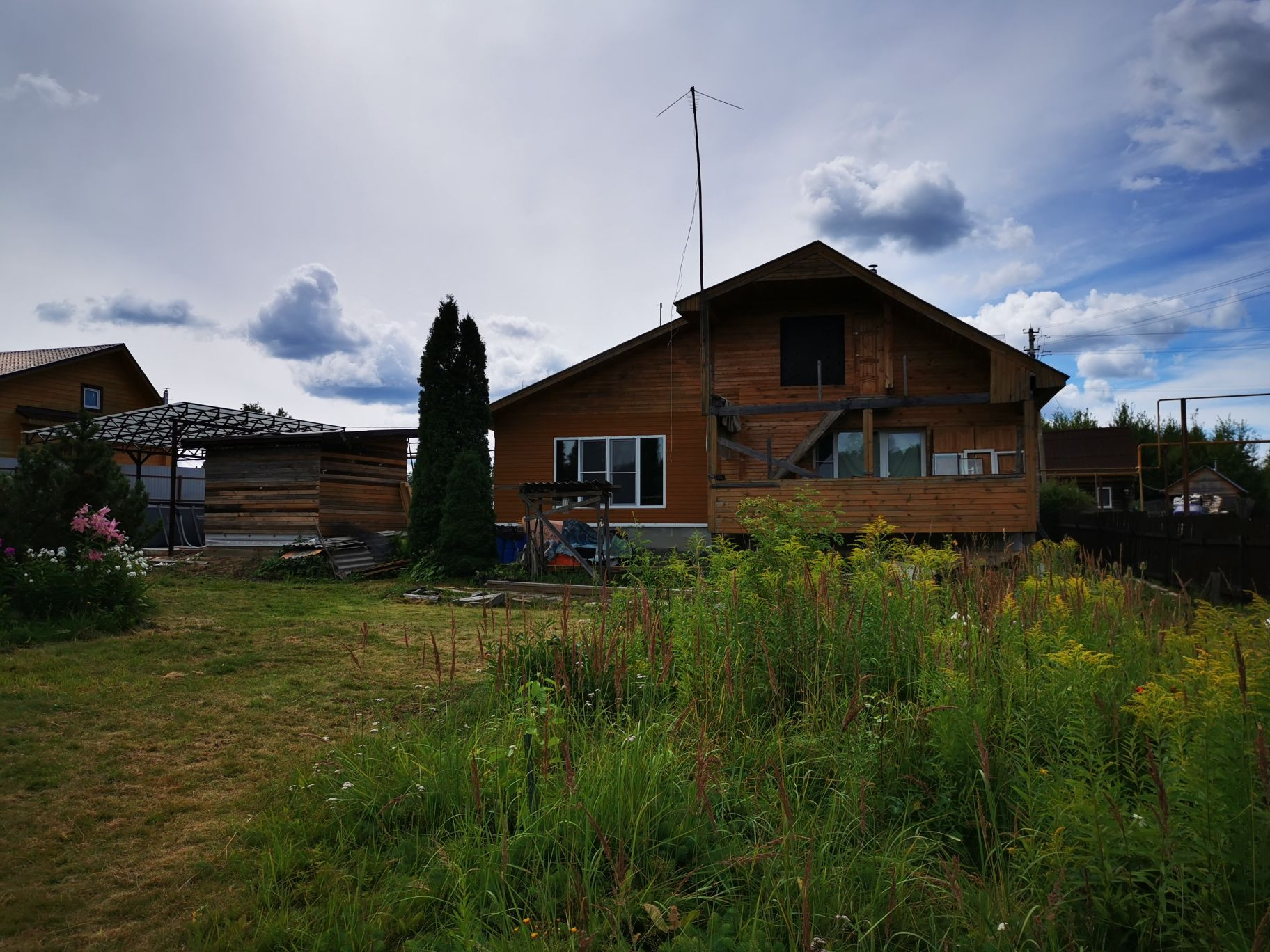 На участке сарай, навес, теплица, многолетние туи и др деревья и кустарники. В 50 метрах - река Узола