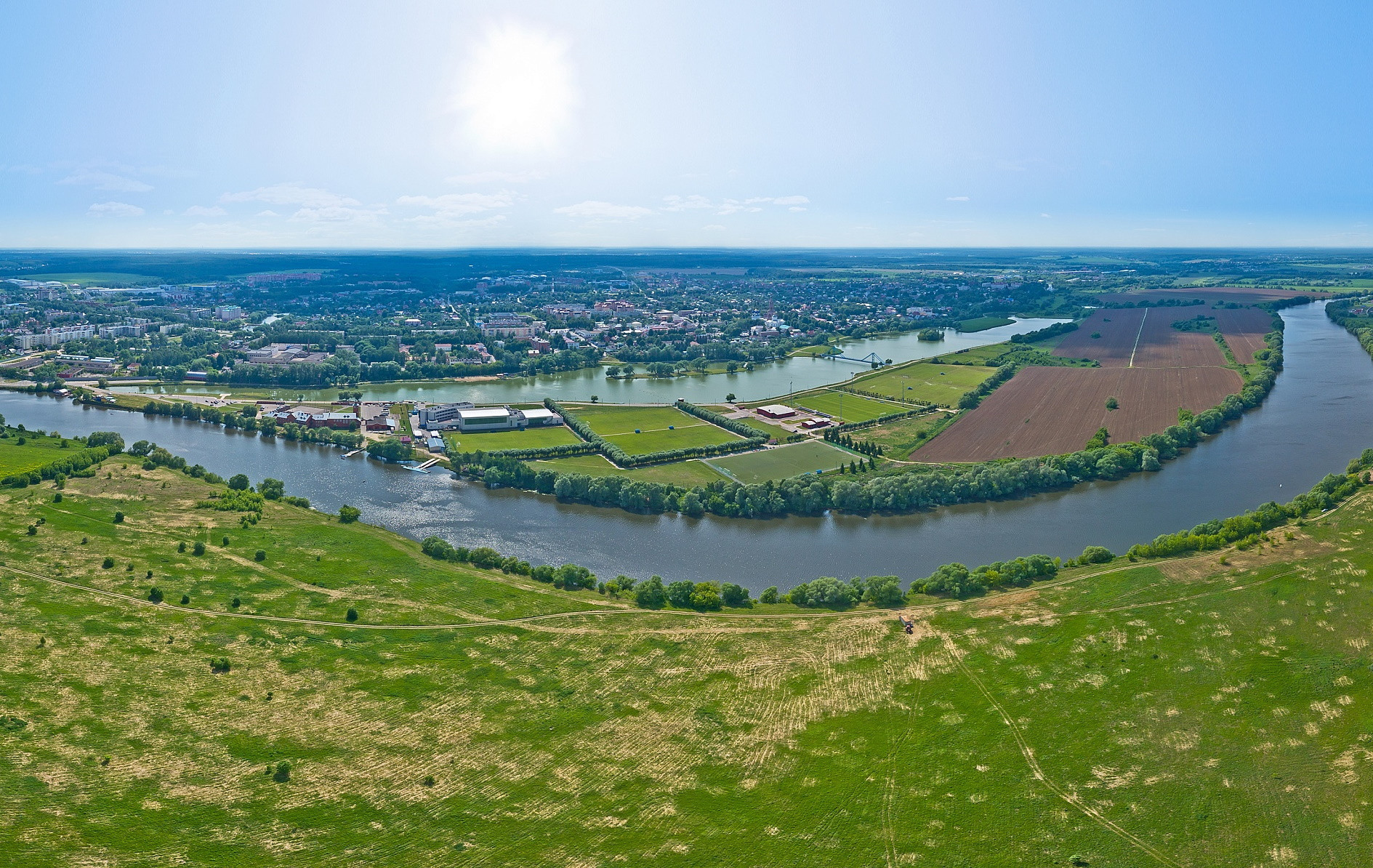 Напротив поселка «Адмирал» - на противоположном берегу реки, - находится живописная прогулочная зона города с ресторанами, кафе, детским игровым парком, пешеходным мостом через озеро Бельское, а также построенная к Чемпионату мира по футболу тренировочная база с превосходными полями для игры (не случайно сборная Аргентины жила и тренировалась именно в Бронницах!).