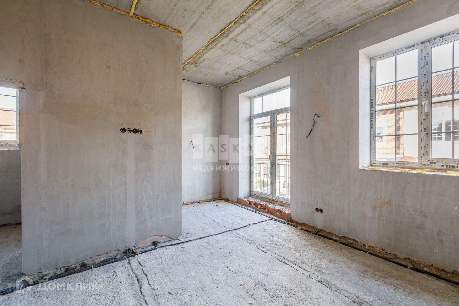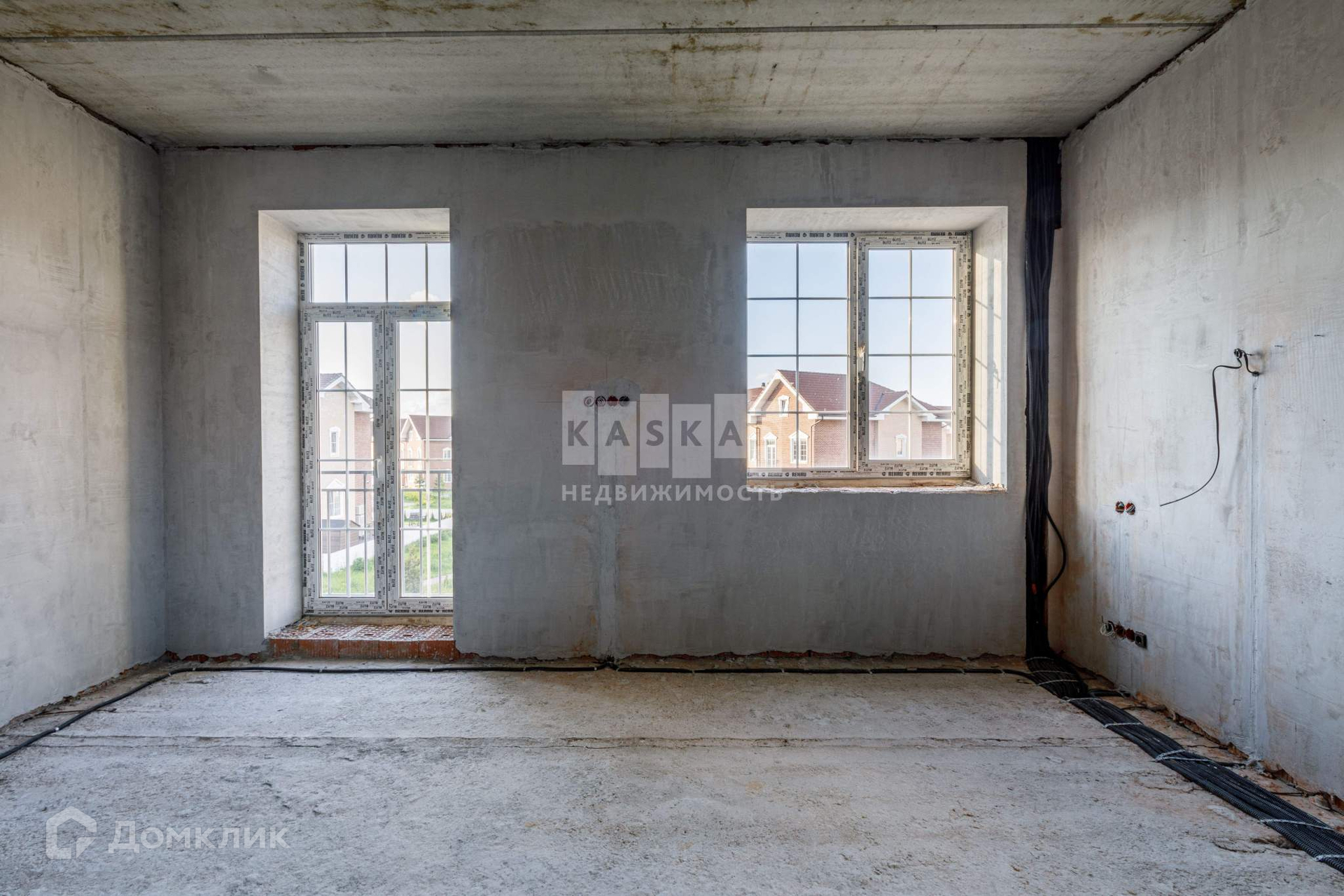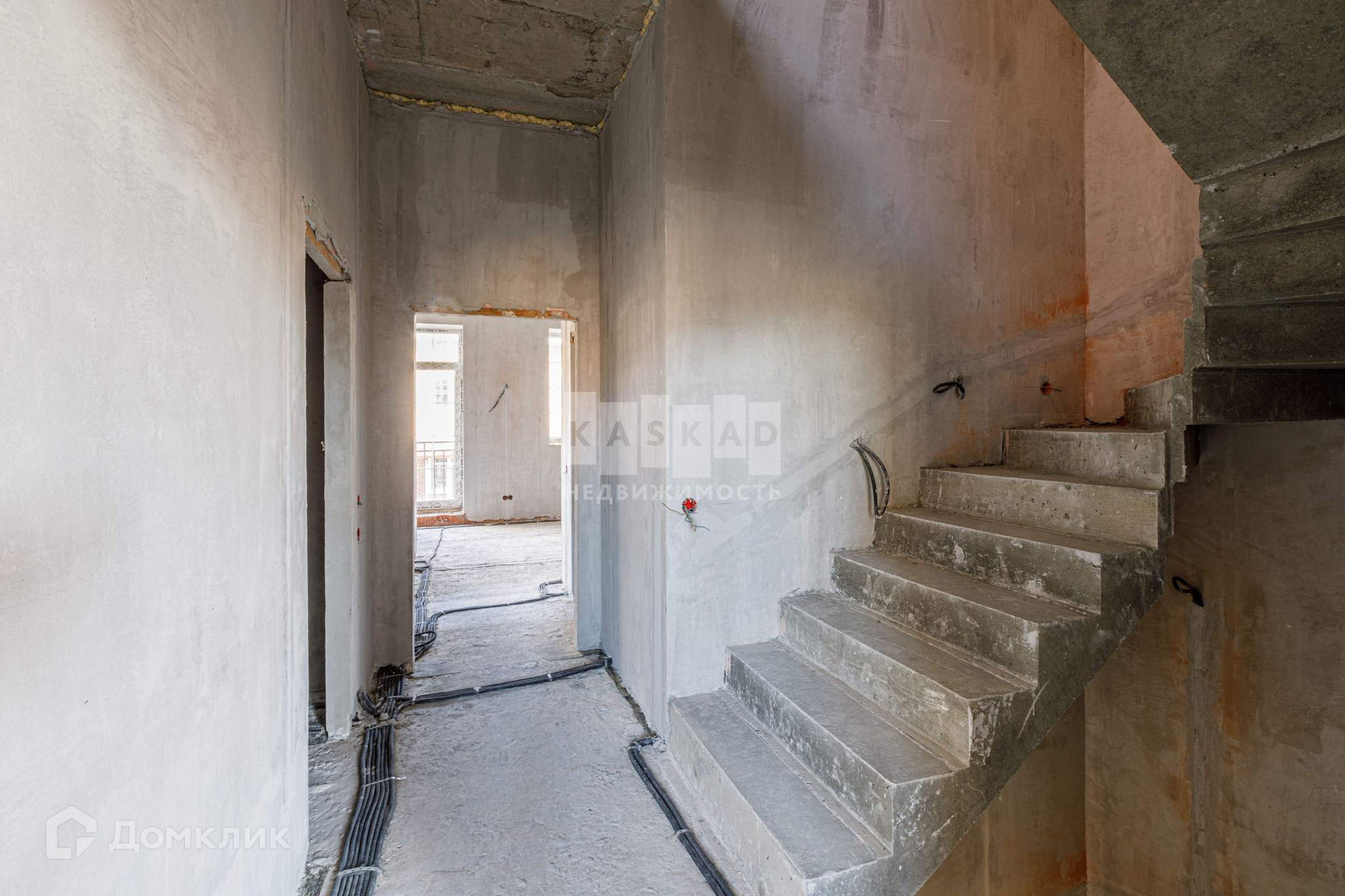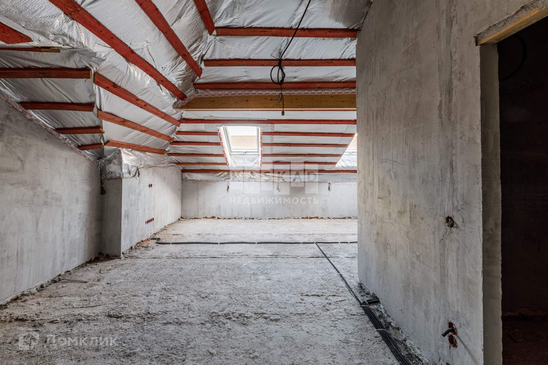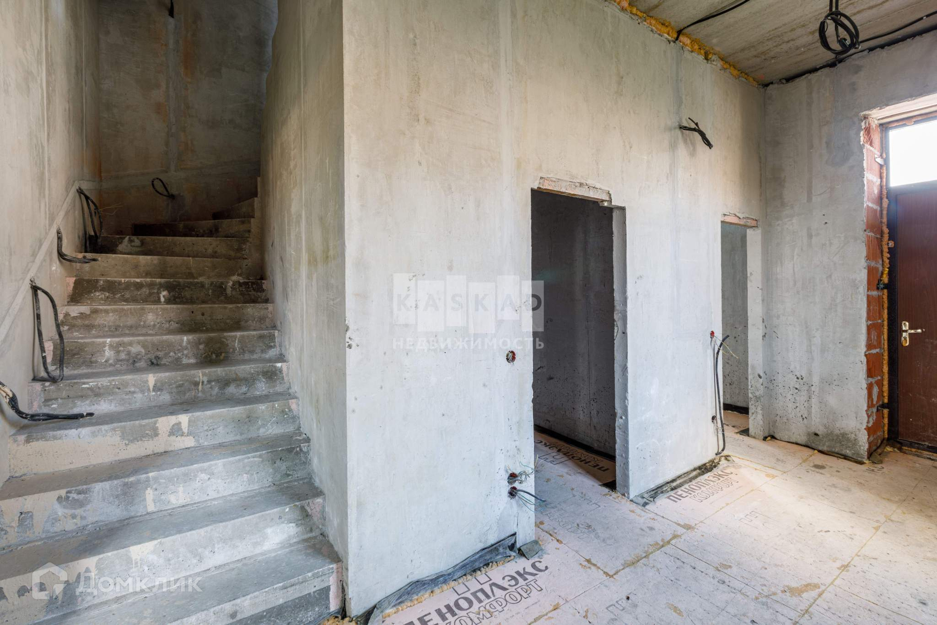 Таунхаус со значительно выполненной предчистовой отделкой: установлена бетонная лестница, утеплена кровля, установлены кровельные окна, смонтированы межкомнатные перегородки, разведена электрика согласно проекту, стены оштукатурены, в дом заведён газ, установлен газовый котёл, со стороны участка возведена терраса с навесом.