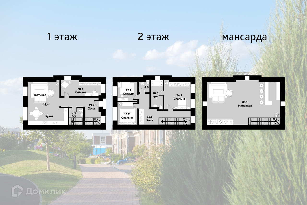 2-этажный таунхаус, 287 м2, на продажу в коттеджном посёлке Академия Парк, коттеджный посёлок Академия Парк, 142к2
