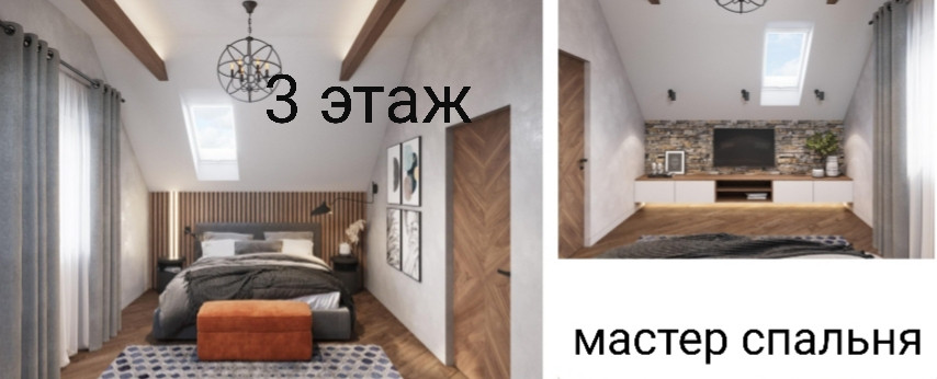 3 этаж : 2 мастер-спальни, совмещенный санузел, кладовая, гардеробная.