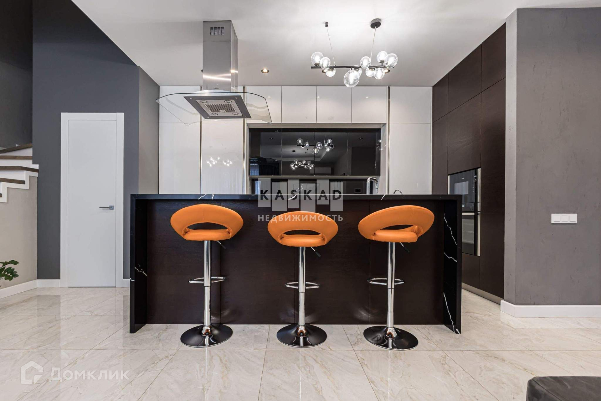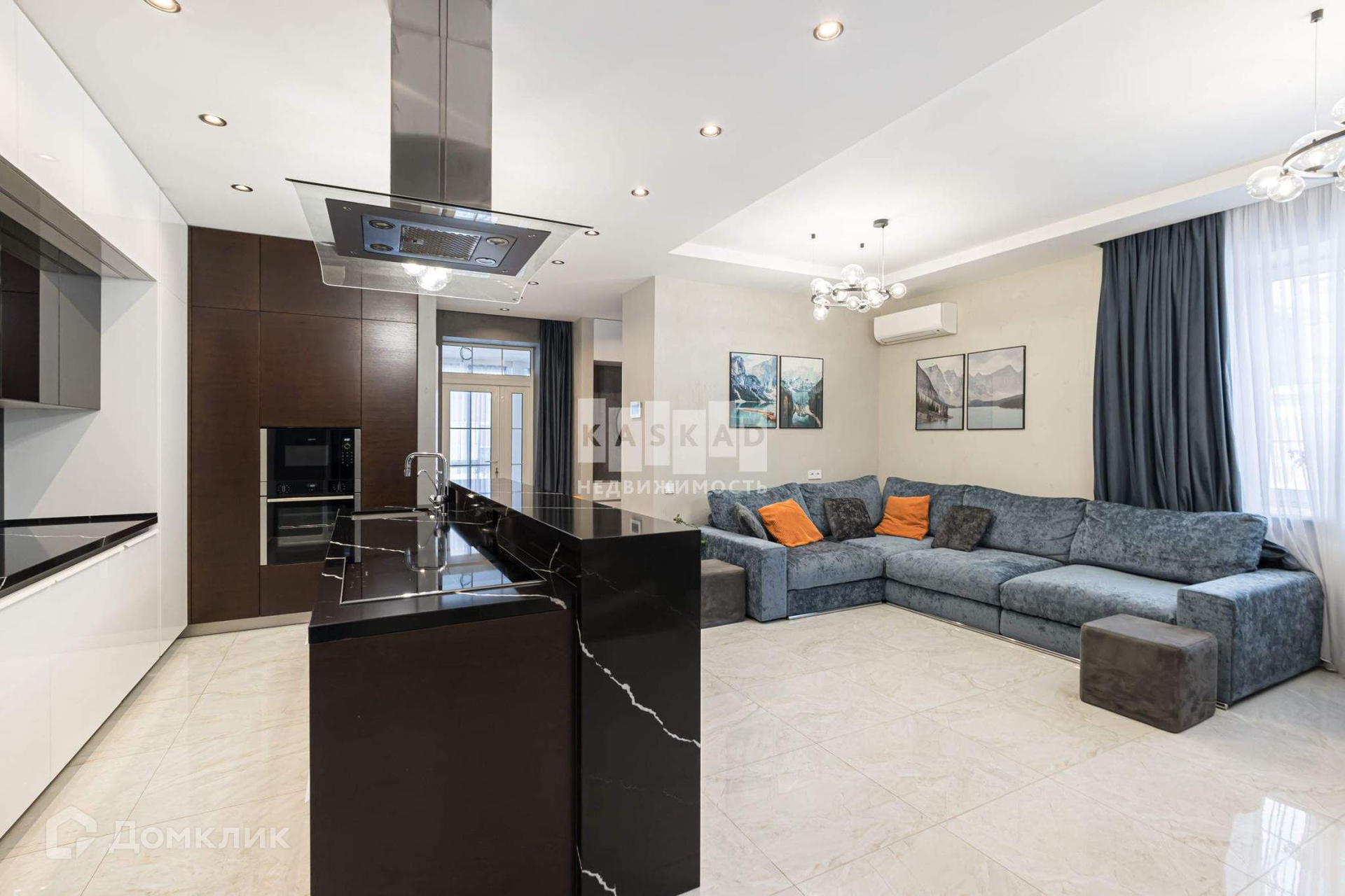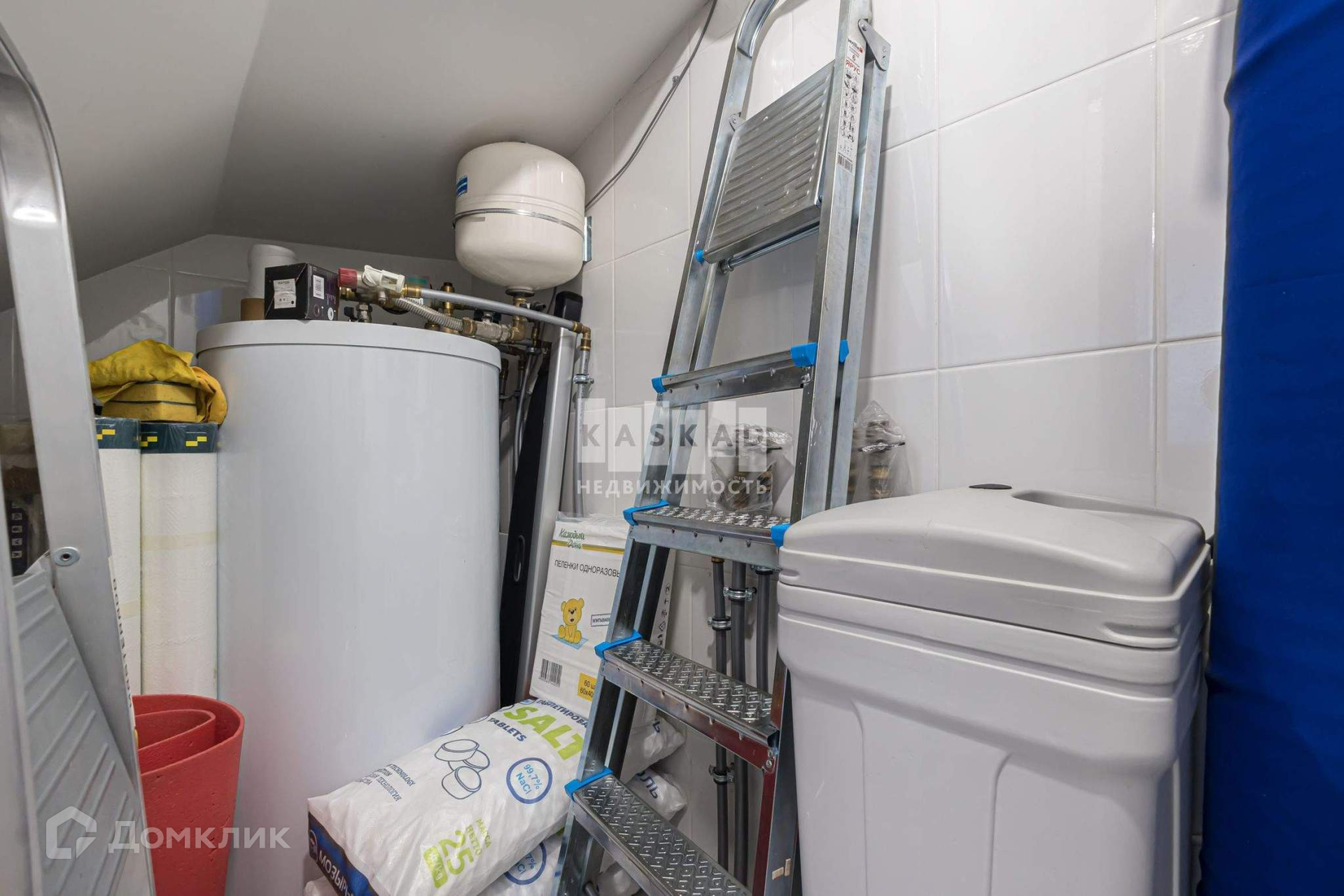 На первом этаже: прихожая, кухня - гостиная с островом, в котором встроена индукционная варочная панель и мойка Omoikiri. В кухне два холодильника, морозильная камера, посудомоечная машина, вытяжка, духовой шкаф с СВЧ. Санузел, котельная (газовый котел, бойлер на 200 литров, электрический котел) система очистки центрального водоснабжения + система очистки питьевой воды. Теплый пол от газового котла.