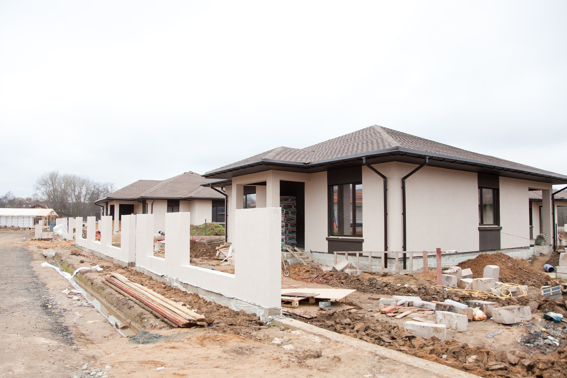 отделка фасада с покраской в единой цветовой концепции поселка